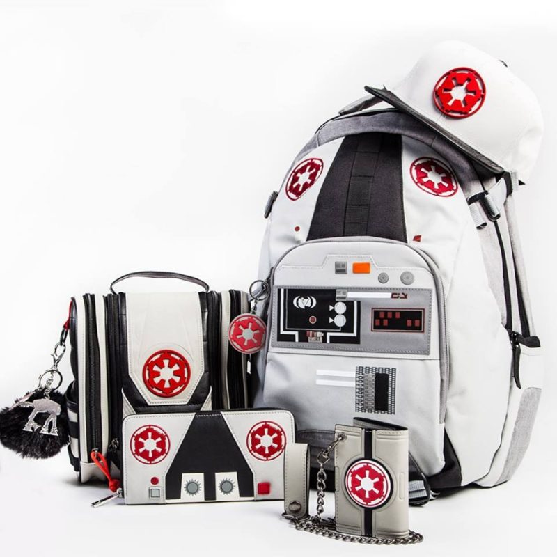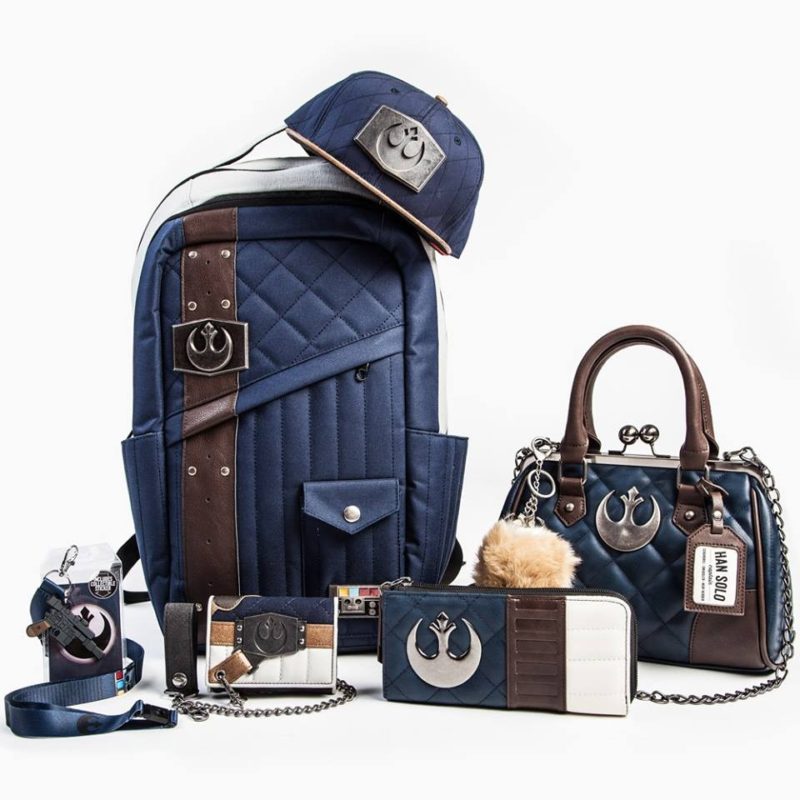 The Han Solo themed range includes a handbag, pom pom accessory, women’s wallet, men’s wallet, backpack, cap, and lanyard. The AT-AT Driver themed range includes a backpack, cap, women’s wallet, men’s wallet, pom pom accessory, and toiletries bag.