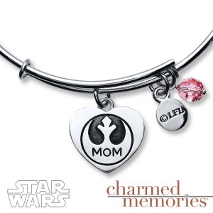 Kay Jewelers has a new women’s Star Wars bracelet available. The sterling silver expandable charm bracelet features a main pendant charm, with a design on both sides – the text ‘Best Mom In The Galaxy’ on one side, the Rebel Alliance logo with the text ‘Mom’ on the other side. There are also two small charms – a small disc with the LFL copyright stamp, and a pink crystal charm. The charm is priced at US$89.99 each. It appears that Kay Jewelers do not ship outside the US, but international fans can use the ‘personal shopper’ service available from mail forwarding companies to purchase from the website.