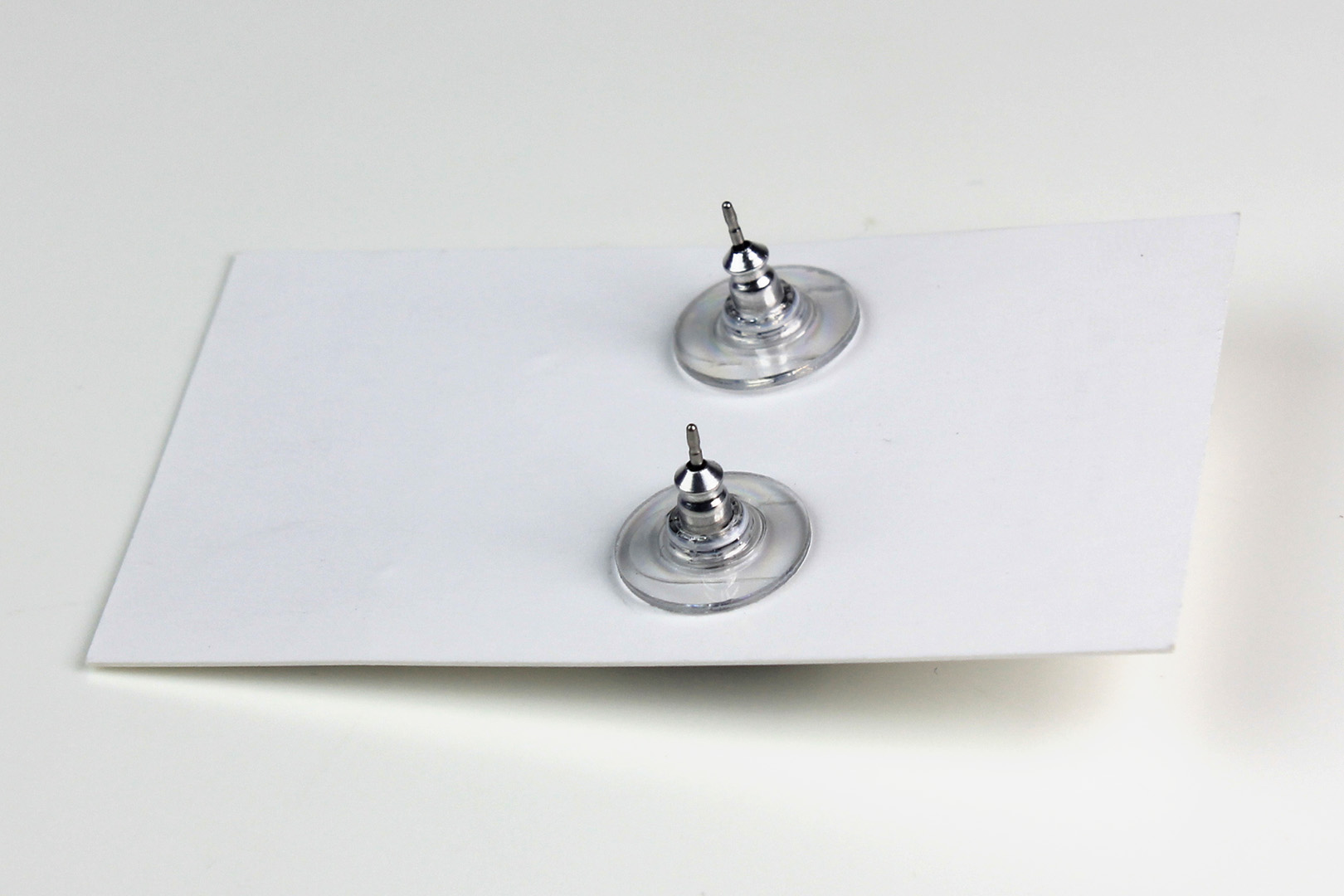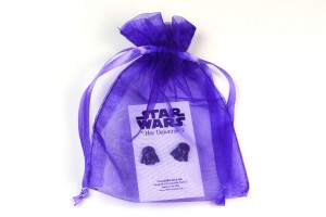 The Darth Vader stud earrings are the only Darth Vader sculpt in the collection that doesn’t feature an oval background – instead they just feature the helmet sculpt. The helmets measure approximately 12mm high x 11mm wide x 5mm deep (at the widest points). The earrings have silver-coloured posts and backings, with wider clear plastic backs. The earrings are a nice size – big enough to see the sculpt well, but not so big as to ‘hang’ on your ear when worn.