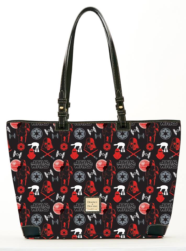 The Run Disney Star Wars ‘Dark Side’ Half Marathon event is coming up soon in April, and Dooney & Bourke have created a new Star Wars handbag range for the event! The new range includes three bags featuring a new print. The ‘Dark Side’ print has a black background with a red/white/grey Dark Side themed pattern, that includes the Star Wars logo, Imperial symbol, AT-AT’s, TIE Fighters, Darth Vader’s helmet, Stormtroopers, the Death Star, lightsabers, and Royal Guard helmets. The design is available in three bag styles – wristlet (US$115.56), letter carrier (US$211.86), and shopper (US$286.76). These are currently available to pre-order for those registered for one of the races at the event – pre-order them here (in the ‘commemorative items’ category).