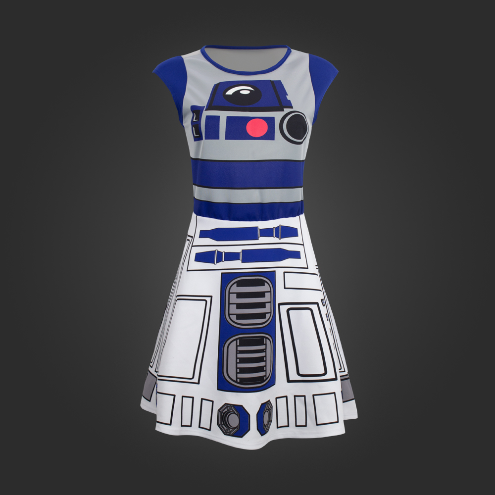 We Love Fine have added two women’s Star Wars dresses to their website, both designed by Catherine Elhoffer. The first is a new R2-D2 skater dress that features pockets and a mesh back. The second dress is the popular Jedi cowl dress that features pockets and a lined cowl hood. Both dresses are available in sizes S to 3X, and are priced at US$40.00 each – We Love Fine can ship internationally! The jedi cowl dress was recently stocked at SuperHeroStuff (but at the higher price of US$57.99).