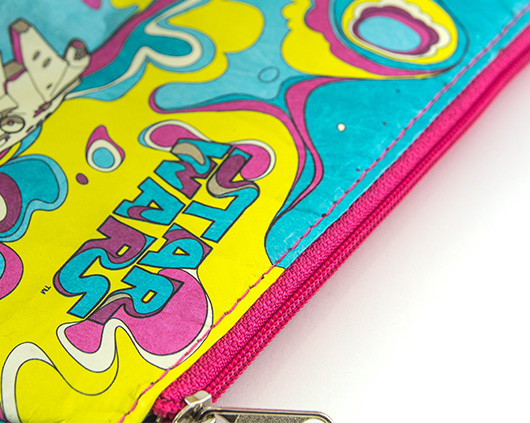 Accessorize with this Star Wars Psychedelic Mighty Wallet Wristlet Purse! The wristlet has one large zip pocket with smaller inner pockets and a wrist strap for easy carrying. Made of slim but durable Tyvek, a series of interlocking plastic fibers spun in random patterns to provide strength and resist water and tears, it’s expandable to suit your storage needs!