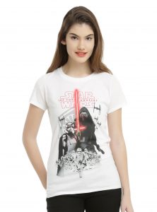 Hot Topic has a new women’s Star Wars t-shirt available. The women’s white t-shirt features a front print of First Order characters from The Force Awakens. Priced at US$22.50 to US$26.50 each, the t-shirt is available in sizes XS to 3X – Hot Topic can ship internationally.