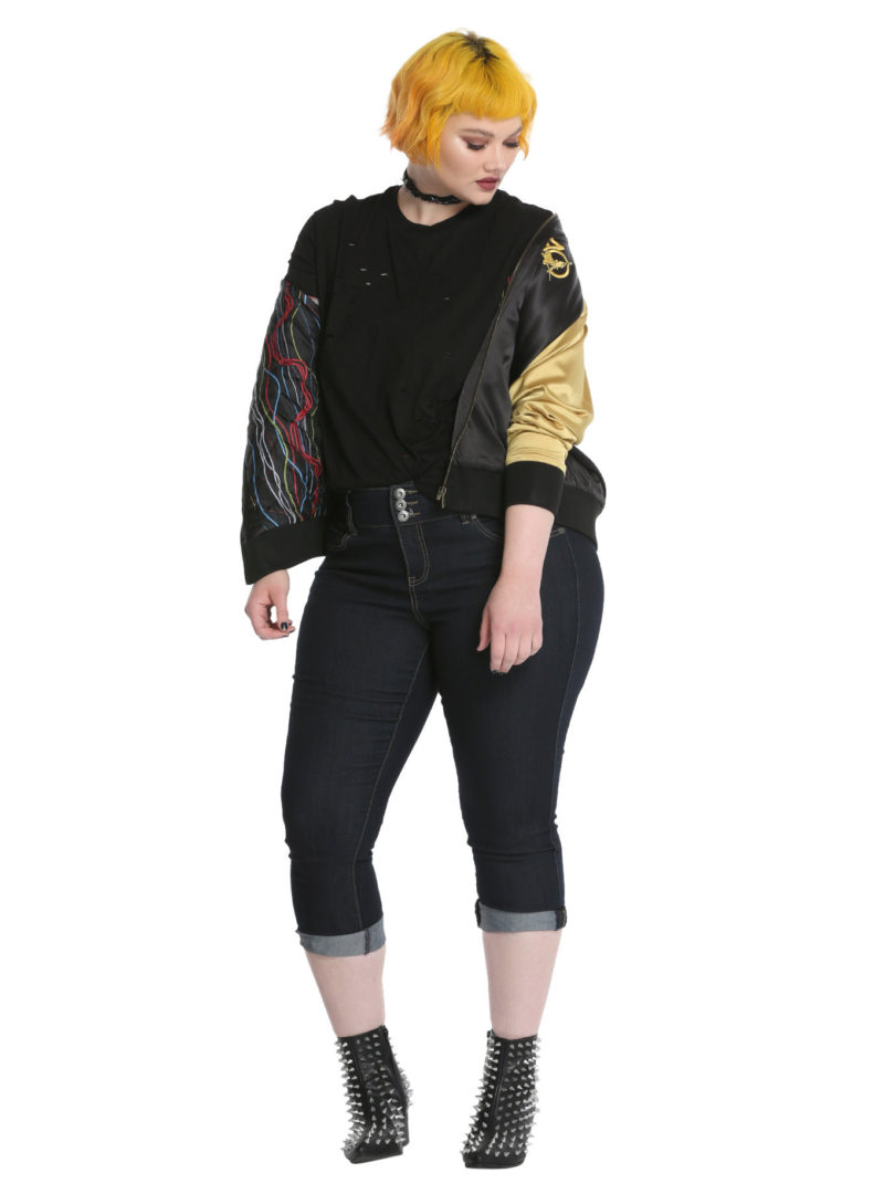The new Her Universe range is now available at Hot Topic! If you missed out on shopping the new range at Celebration Orlando, the collection is now available online. The range available at Hot Topic includes the Darth Vader cardigan, Floral Rebellion romper, the popular C-3PO & R2-D2 embroidered satin jacket (which sold out at the convention), as well as a new Darth Vader tank top.