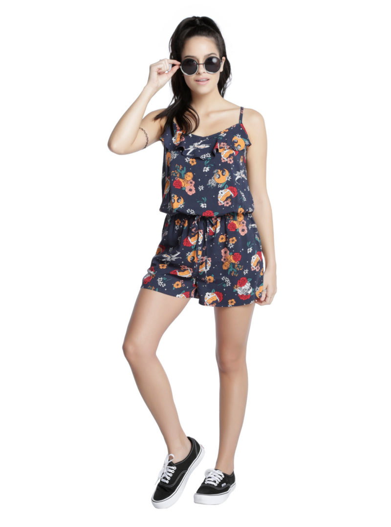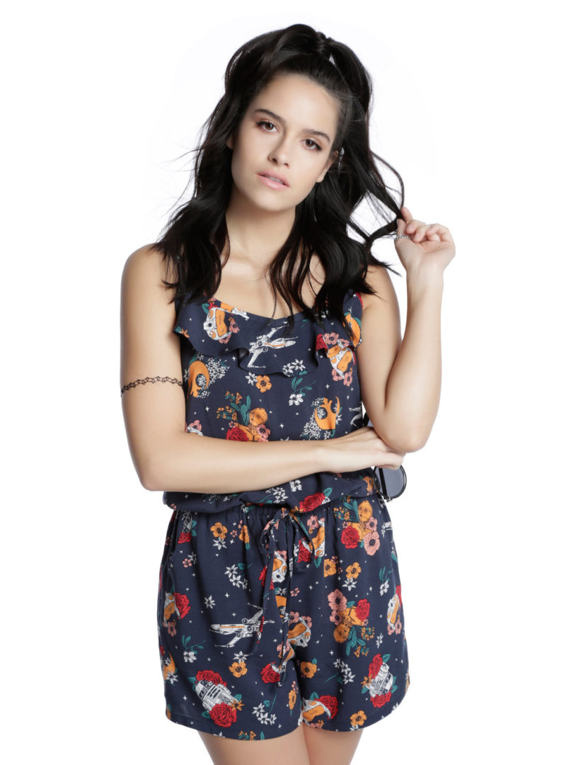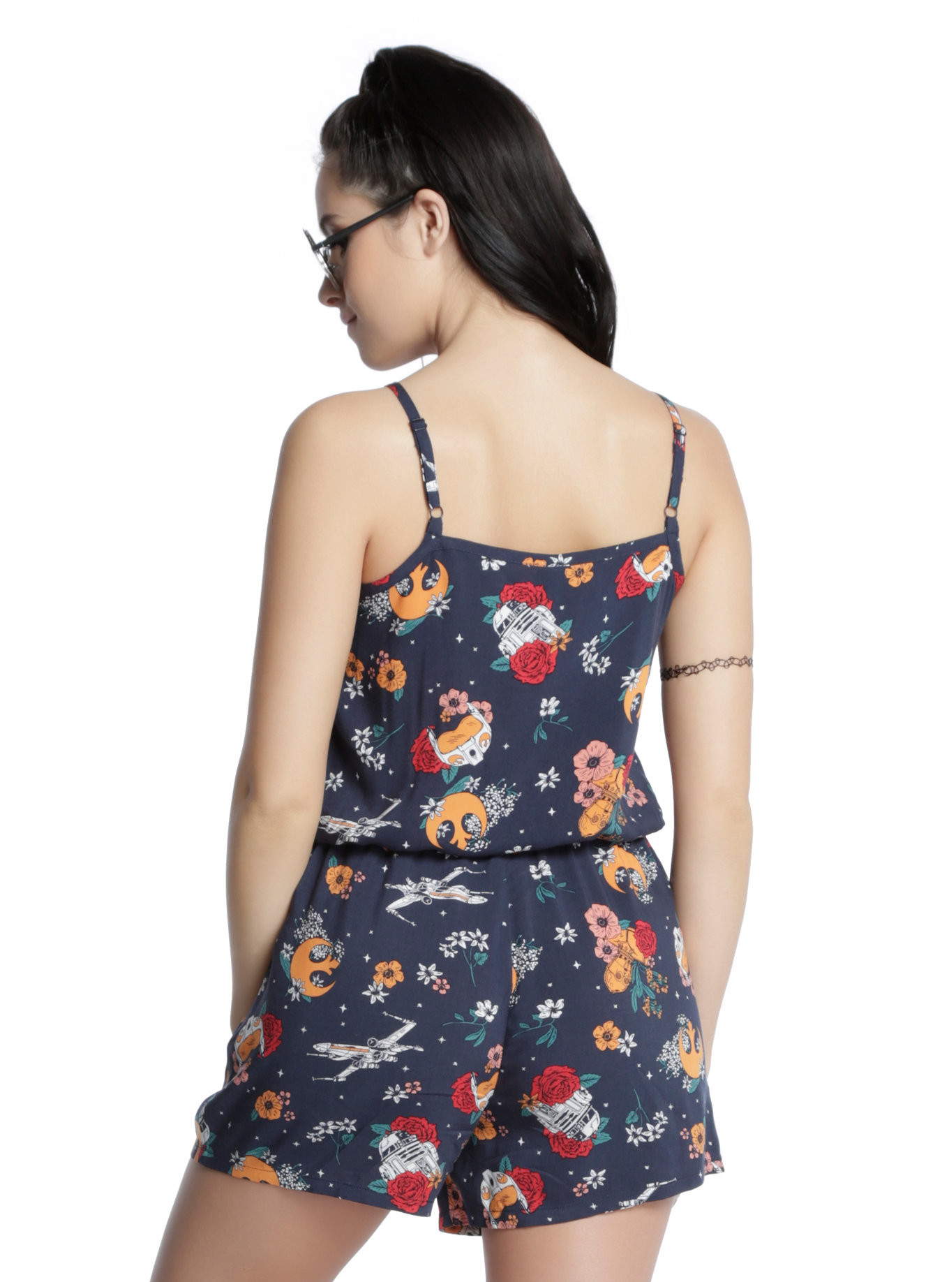 Being a fangirl has never been more fashionable. This navy romper is worthy of a hero of the Rebellion. It’s got an allover floral print that features Rebel ships, the Rebel helmet, and the classic Rebellion logo. With its elastic waist it’s sure to have a flattering fit, and it’s got pockets for your convenience!