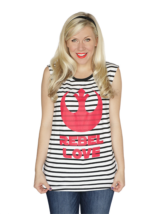 Her Universe has released the new Star Wars range on their website! The new range includes six new designs – the Han Solo cardigan and comic print dress that were previewed earlier, along with a new neon Han Solo t-shirt (also available in plus sizes), a Rebel Love striped tank top, a Star Wars starships skirt, and oil slick retro logo t-shirt. Prices range from US$20.00 each to US$81.00 each, depending on style and size – most items are available in sizes XS to 5X. Unfortunately Her Universe doesn’t ship outside the US or Canada – but international customers should be able to place orders via a mail forwarding company (personal shopper service).