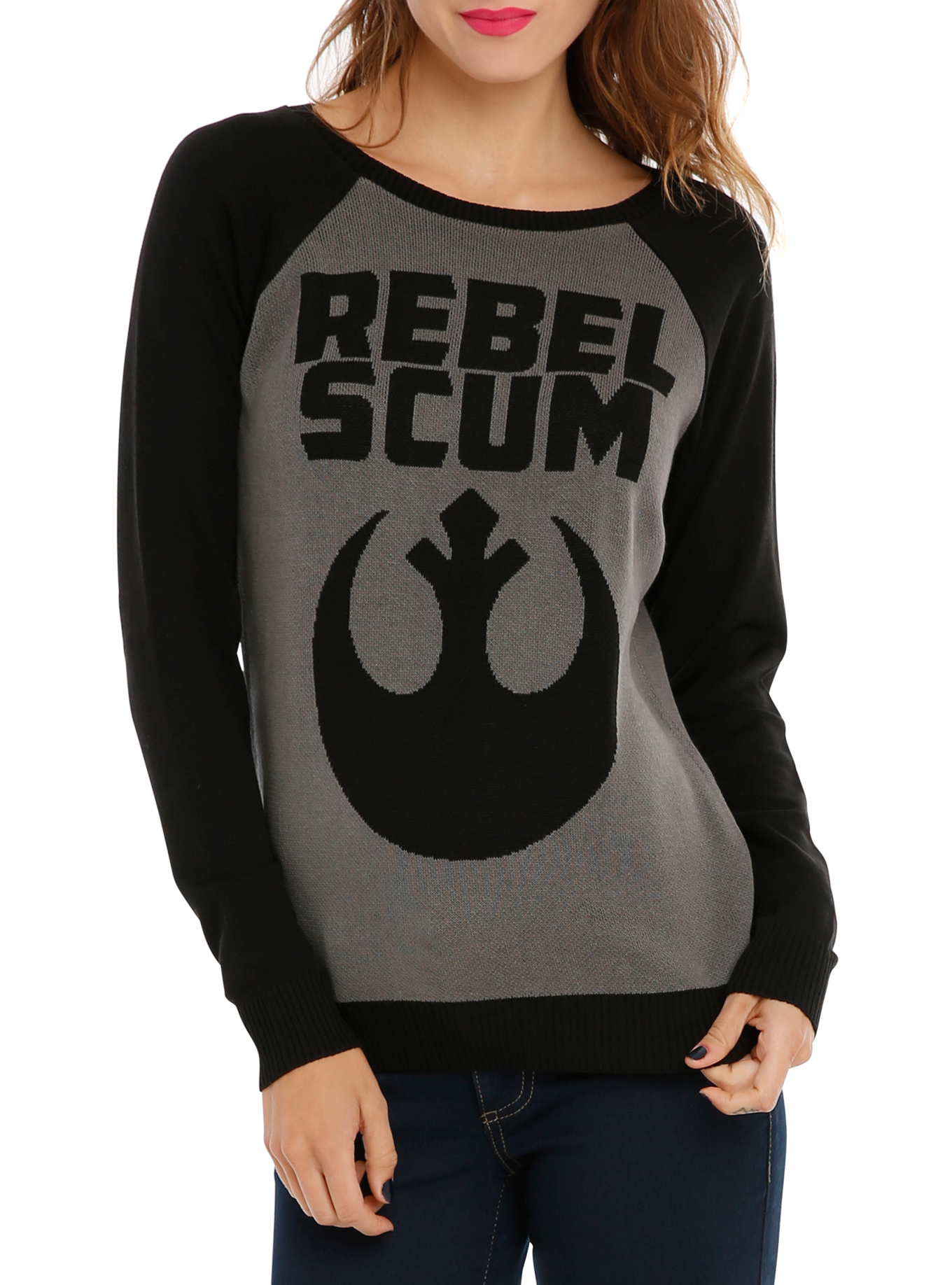 Hot Topic has added several new women’s Star Wars apparel items to their website. The five new items include two new t-shirts, a tank top, and two items from the recent We Love Fine x Goldie collection. The two t-shirts and tank top are made by Fifth Sun and are available in sizes S to XL. The Rebel Scum sweater and Chewbacca jacket made by We Love Fine x Goldie are both available in sizes S to 3X. Prices for the new items vary between US$20.50 – US$83.50, but Hot Topic has frequent sales (there is currently 20% off everything on-line) and can ship internationally.