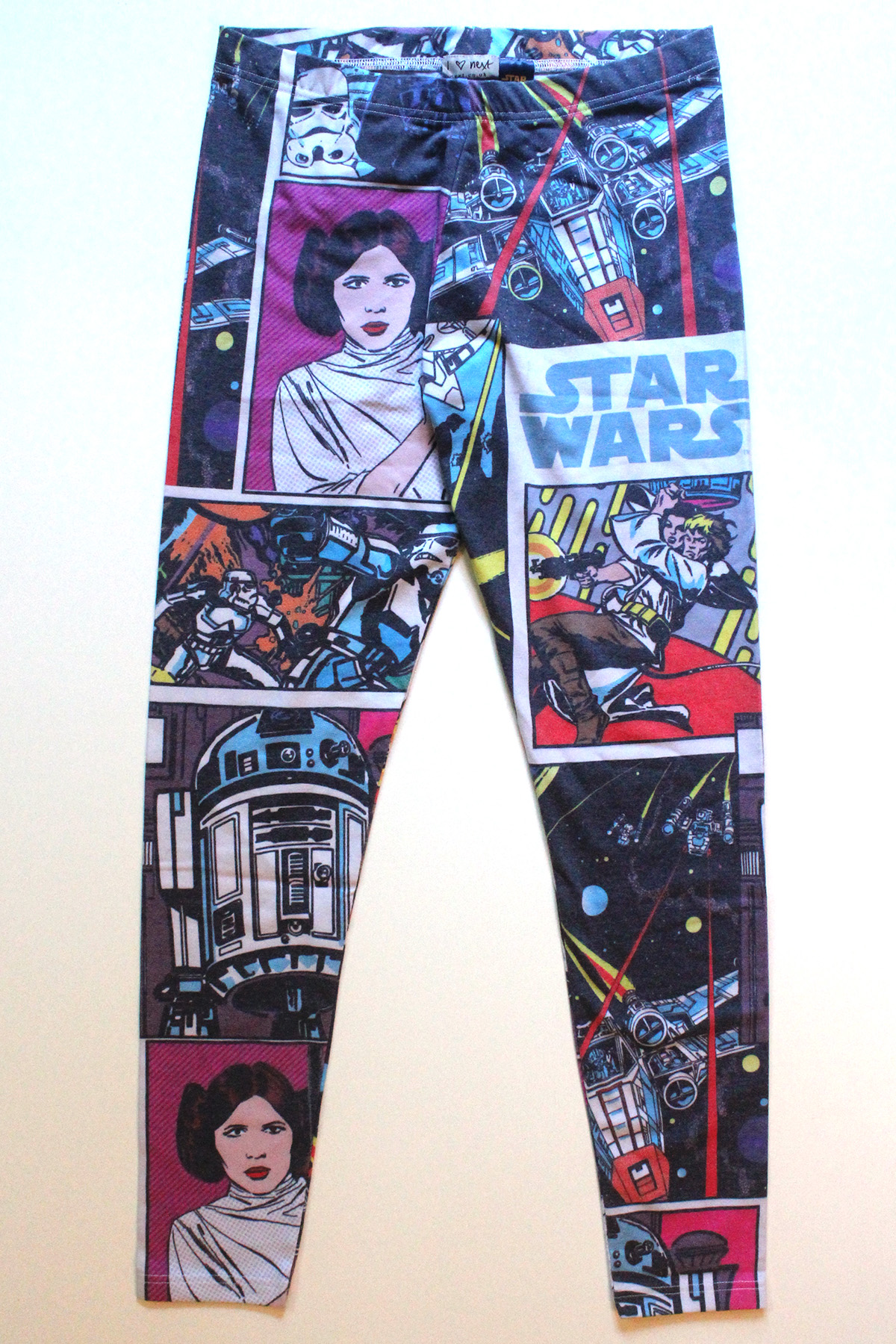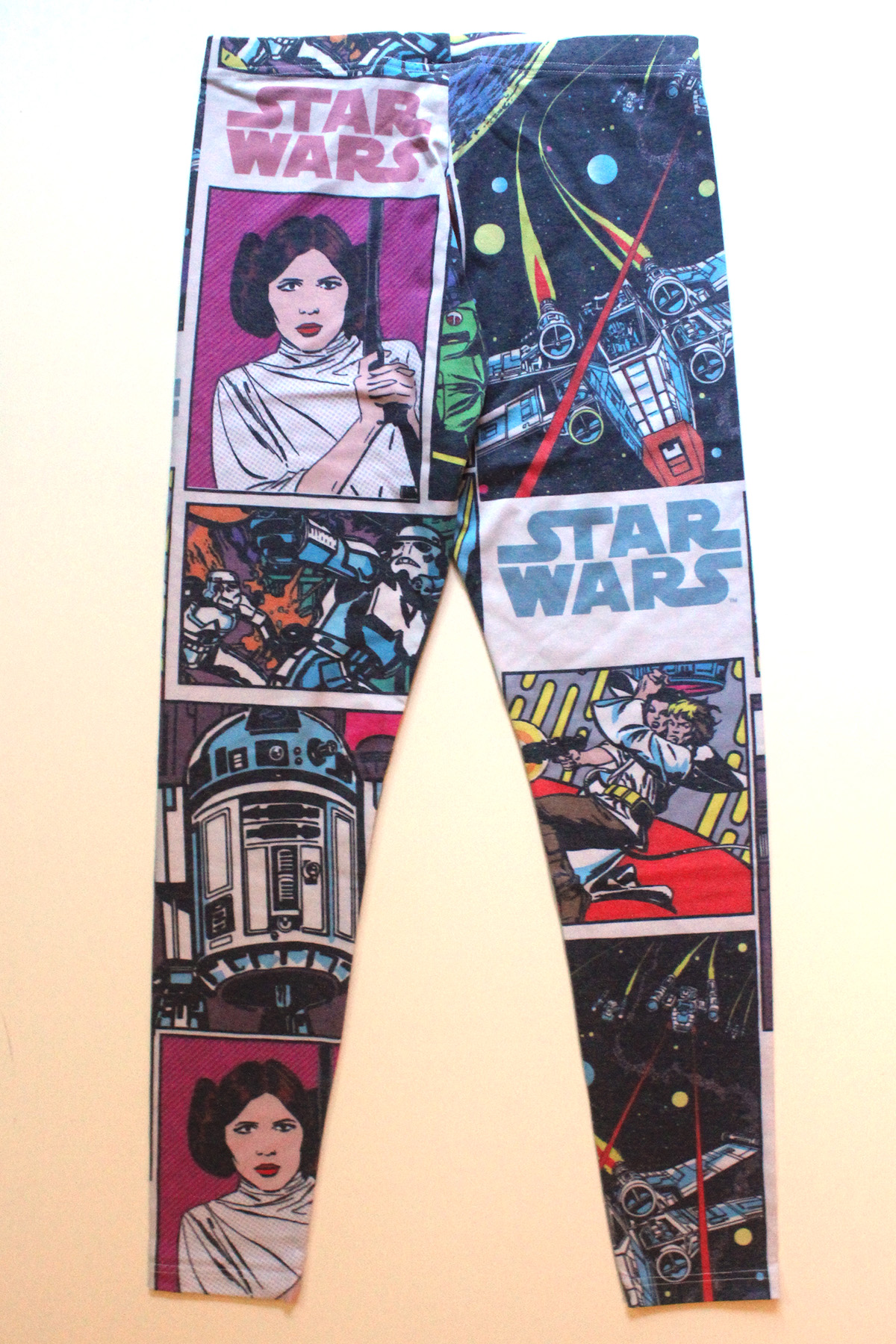Recently, several Star Wars fan sites have reported the exciting find of Star Wars clothes for girls available from UK store Next. I noticed that the clothing was available in sizes 3 to 16 – the larger girl’s sizes overlap with the smaller women’s sizes (although children’s sizing also takes height into account). I bought the leggings and the crew top in size 14 (the closest to my 5’3″ height on the chart), which have just arrived. Prices range from £12 to £22 (US$22 to US$40) depending on size, they can ship internationally.