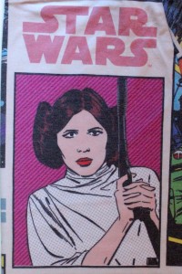 The leggings are sewn from printed Star Wars fabric, which features a repeating print of classic comic artwork. This size 14 pair measures approximately 35.5cm across the waist band, 90.5cm in length from waist band to lower hem. For comparison, laid flat they are a little bit larger than a pair of my size small women’s Star Wars leggings from Mighty Fine, (which measure approximately 30.5cm across the waist band and 92cm in length from waist band to lower hem). The fabric is 60% polyester, 33% cotton, 7% elastane, so they have a nice amount of stretch. I really like the comic artwork print, particularly the prominent inclusion of Princess Leia.