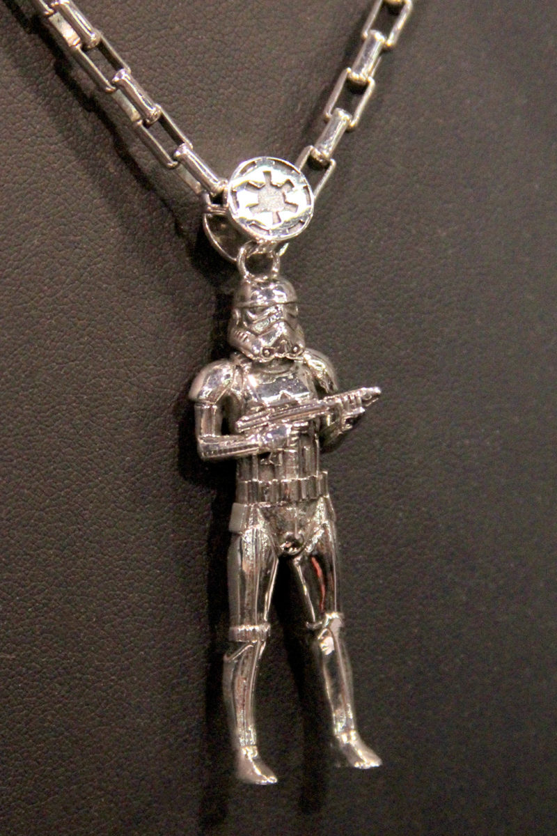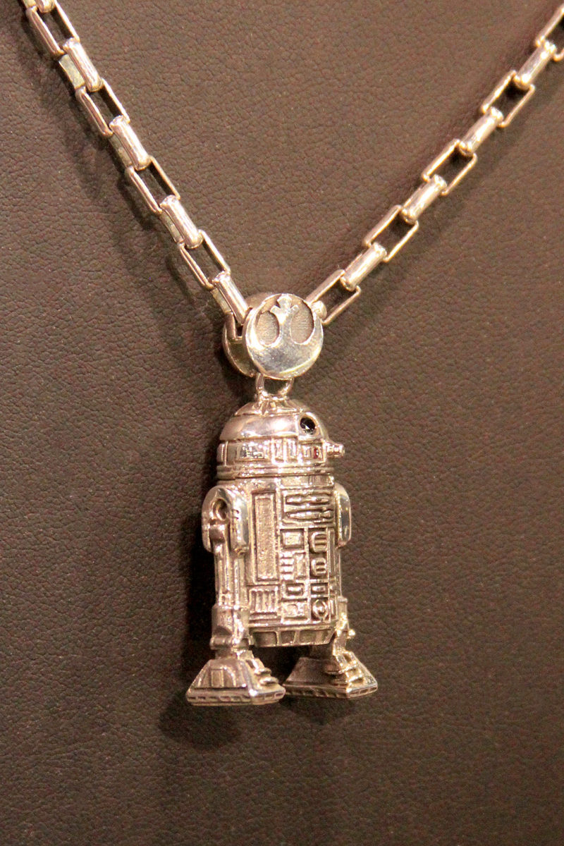 An exciting aspect to Celebration Anaheim is finding new products and upcoming releases, and today I came across a great new find – Han Cholo. Influenced by Rock N’ Roll, Science Fiction, Fantasy art and Los Angeles culture, the jewelry brand has worked with companies such as Hasbro, Nintendo Wii, X Box – and now Star Wars. At their Celebration Anaheim booth (#1145) they have revealed a fantastic collection of licensed Star Wars jewelry which includes several necklaces!