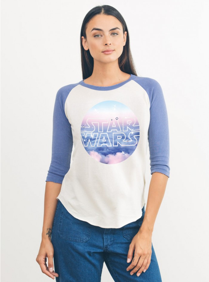 - Star Wars logo raglan top – sizes XS to L – US$48.00