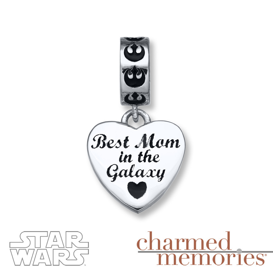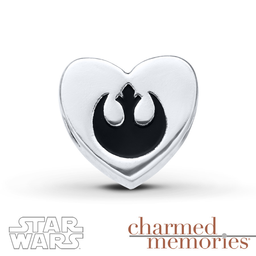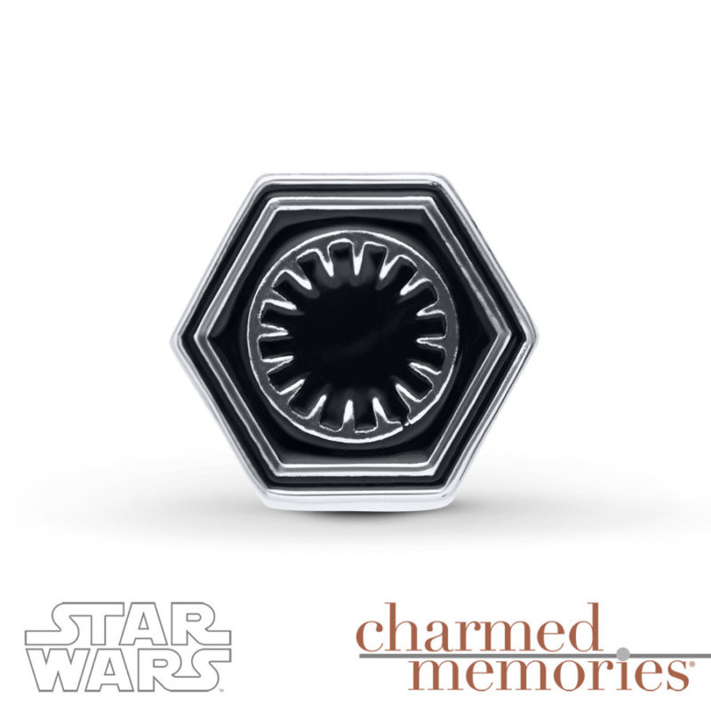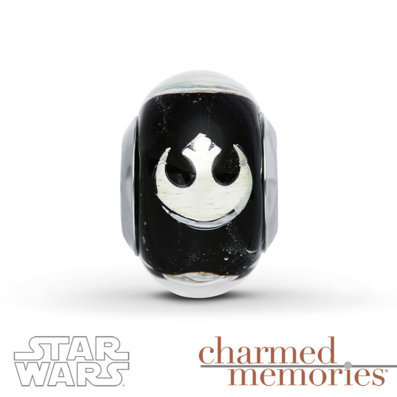 Kay Jewelers has added five new Star Wars charms to their Charmed Memories jewelry range. The new designs include a First Order symbol bead (accented with black enamel), a Murano Glass Rebel symbol charm, a Rebel symbol heart-shaped charm (accented with black enamel, while the back features white crystals), a ‘Best Mom In The Galaxy’ dangle charm, (black enamel Rebel symbols on the hanger, and white crystals on the charm back), and an accent bead with black baguette crystals (Darth Vader inspired).