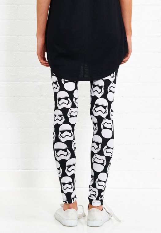 Australia/New Zealand based store JayJays has a new style of women’s Star Wars leggings available. The black and white leggings feature an all-over repeating print of a First Order Stormtrooper helmet. Available in sizes XXS to XL, the leggings are priced at AUD$20.00 – they are also part of a ‘3 for $50’ promotion. Australian/JayJay’s sizing is different to US sizing, check the size guide for measurements. On-line orders from JayJays are processed from Australia (all prices are in AUD), but they do ship internationally.