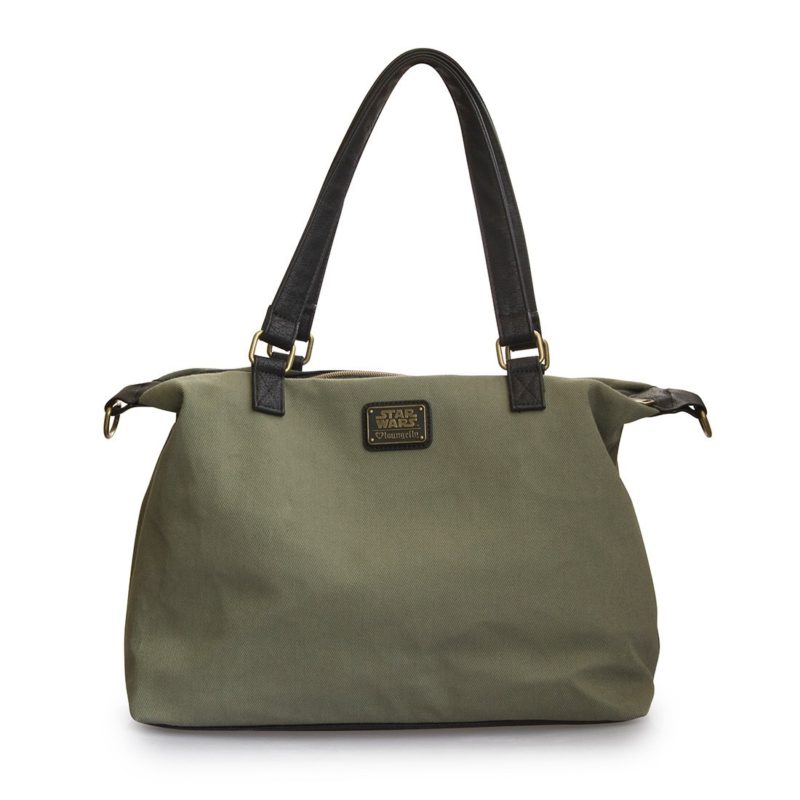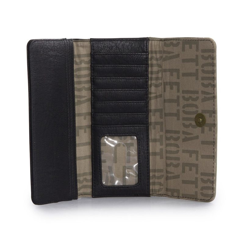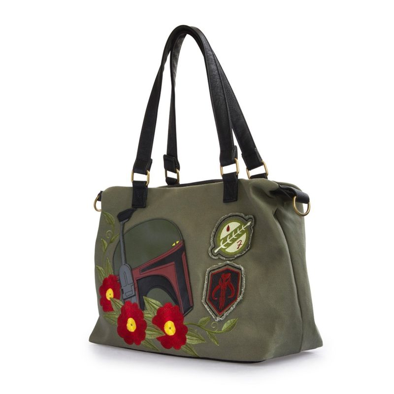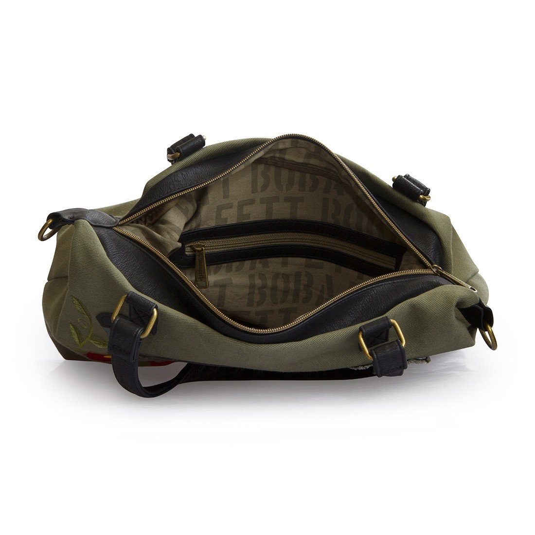 Loungefly has two new Star Wars items available – the Boba Fett twill crossbody bag and matching wallet! These were first previewed at the WWD Magic trade show back in February, so it’s great to see this new style finally become available. Both items are made from a green twill, and feature a large faux leather applique of Boba Fett’s helmet, with floral embroidery, with two Mandalorian symbol patches. The lining of both items is different from the usual black Star Wars logo printed lining fabric usually seen in Loungefly x Star Wars items – the lining for these items features the text ‘Boba Fett’ in a stencil-style repeating print. While I’m not usually a huge Boba Fett fan, I am absolutely loving this new bag style!