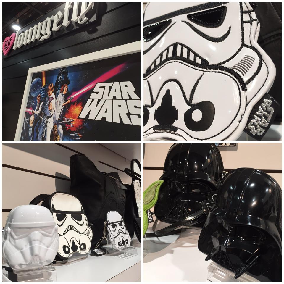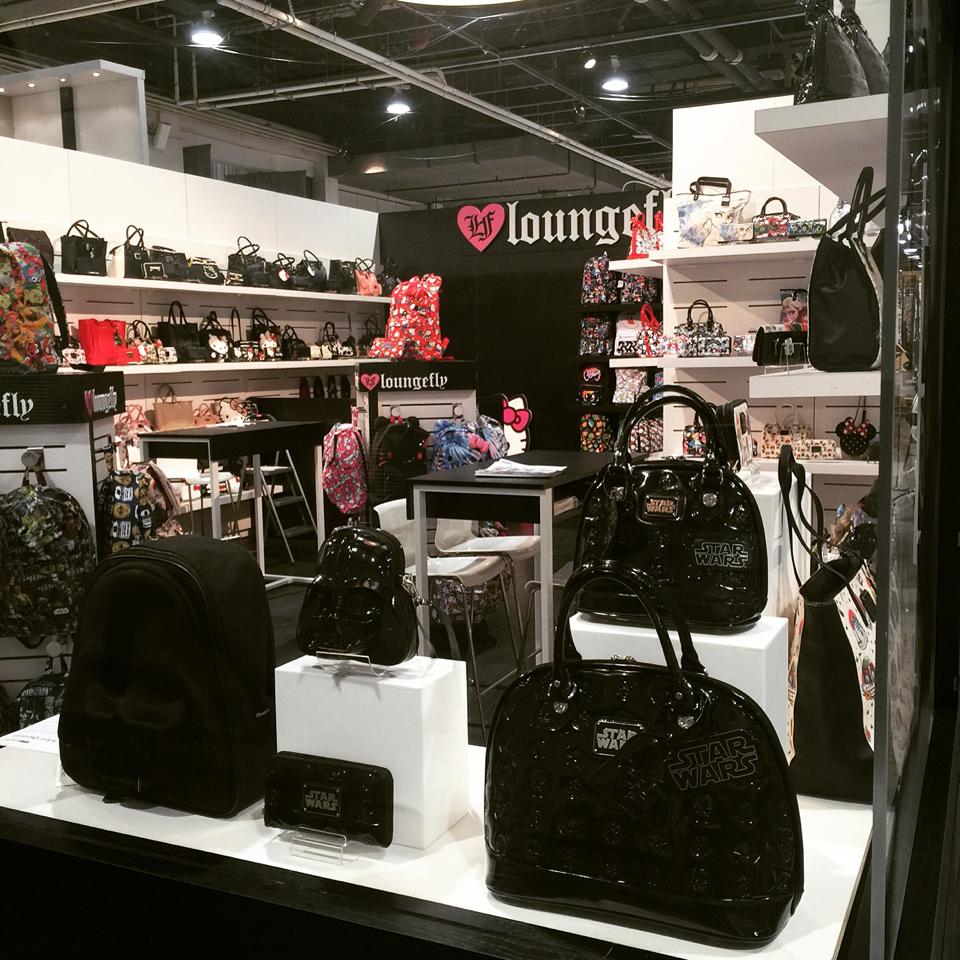 The fashion trade show WWDMAGIC is currently on in Las Vegas, and Loungefly has posted two images of their booth display, which includes some up-coming Star Wars items! Some of these items are already available (like the range of embossed patent leather Darth Vader items) – but there’s a few new items I haven’t seen before! I can spot a shaped Darth Vader backpack, a moulded stormtrooper coin clutch – and what looks like a new mini stormtrooper bag to the left of the coin purse? I’m loving that Darth Vader stitched bag behind the stormtooper items too! You can just spot the ear of the Yoda coin purse seen in an earlier preview image from Modern PinUp. Here’s hoping for more/closer photos of these upcoming Loungefly x Star Wars items as the show continues!