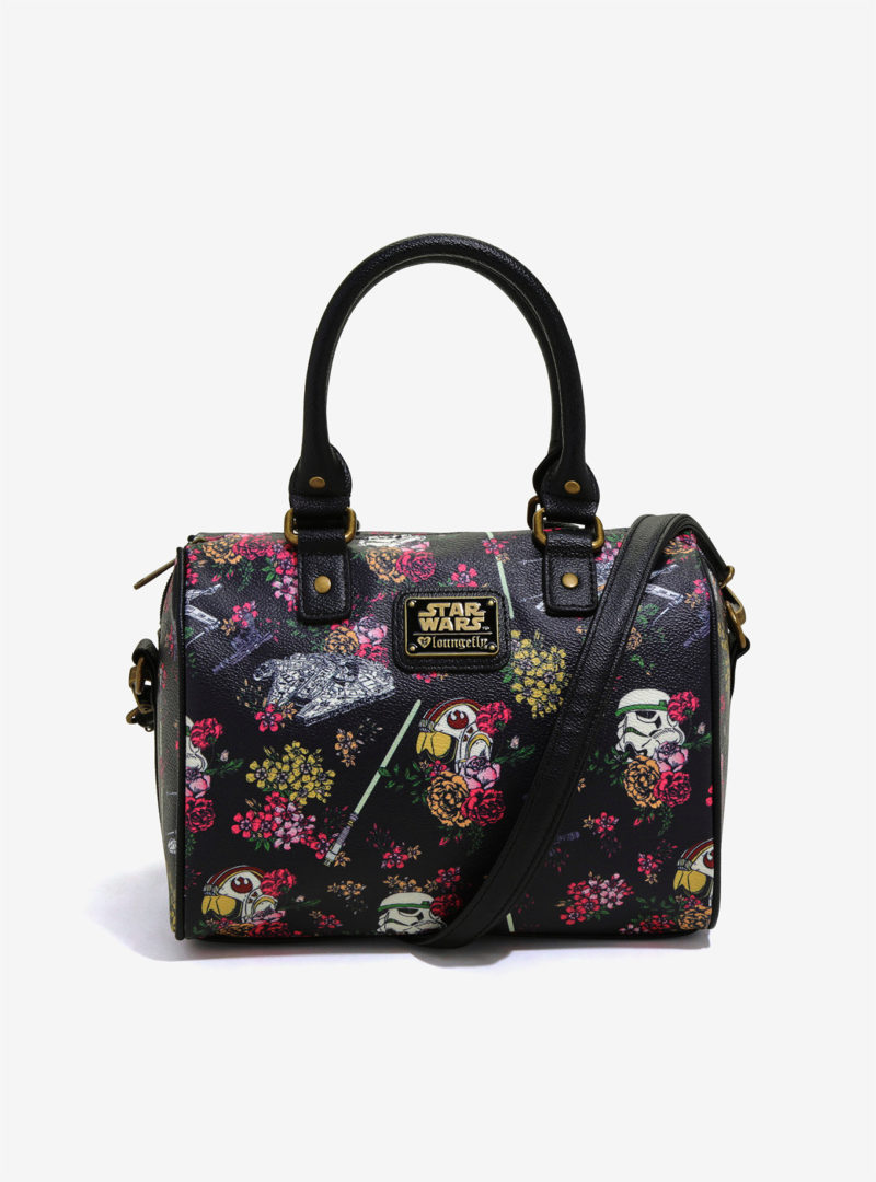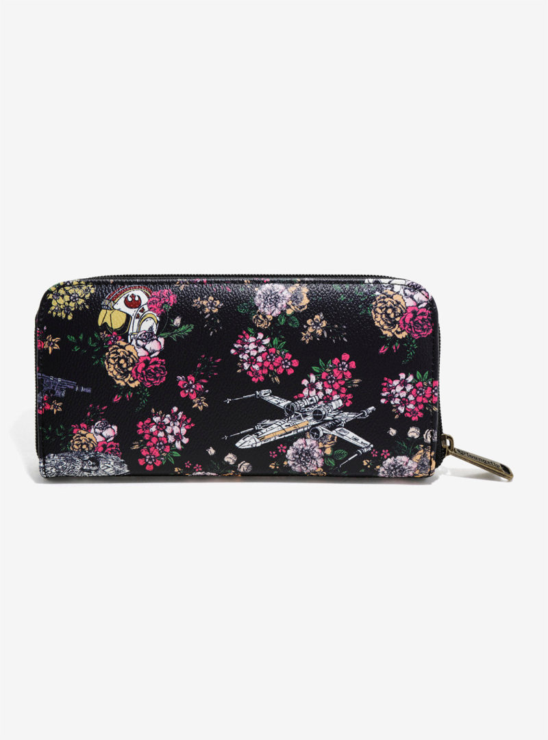 Her Universe is now stocking Loungefly x Star Wars items! The Her Universe website now has 12 Loungefly items available, including some classic designs like the R2-D2 and C-3PO coin purses – but also some brand new designs! The newly stocked range includes the brand new Floral Wars barrel bag and wallet, which features a beautiful floral print with scattered Star Wars elements like the Millennium Falcon, Stormtrooper helmet, and X-wing Fighter.