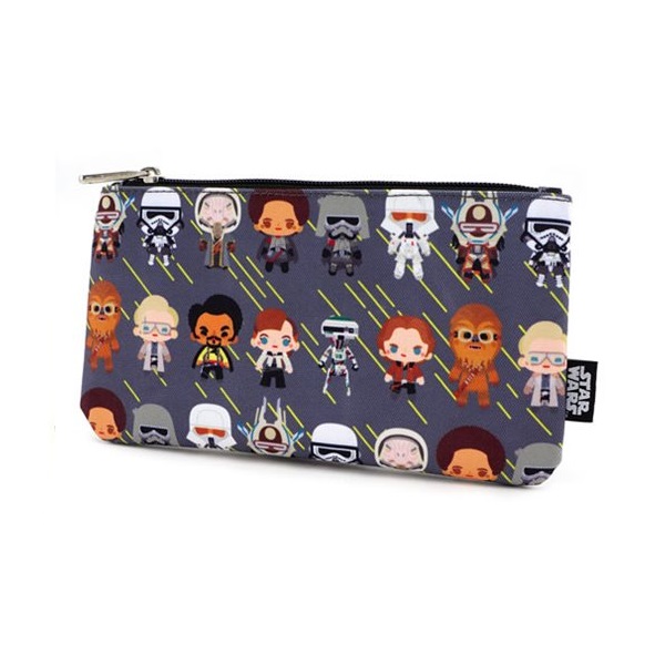 The new Loungefly x Star Wars Solo range is now available for pre-order at Entertainment Earth! The collection includes mini-backpacks, wallets, a standard backpack, and three coin purses. The designs include Han Solo cosplay (mini backpack and wallet), Solo chibi character print (mini backpack, wallet, backpack, coin purse), a faux fur Chewbacca coin purse, and Solo Millennium Falcon coin purse.