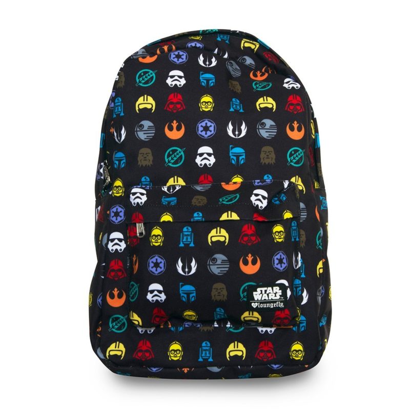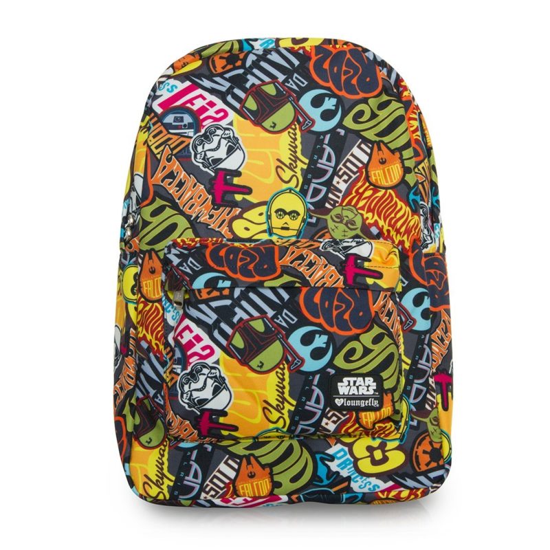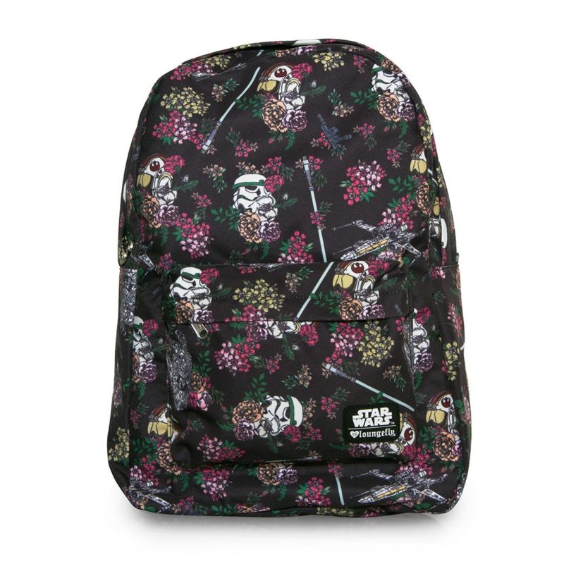 Loungefly has a new range of printed Star Wars backpacks available. The new backpacks designs include the gorgeous Floral Stormtrooper print, Multi Symbols pattern print, a groovy vintage style stickers print, lovely ombre’ Stormtrooper helmet print, a subtle floral print with X-Wings and the Millennium Falcon, and a ‘Bright Leaves’ Boba Fett print. The range also includes matching coin/cosmetic bags, perfect for popping in your handbag.