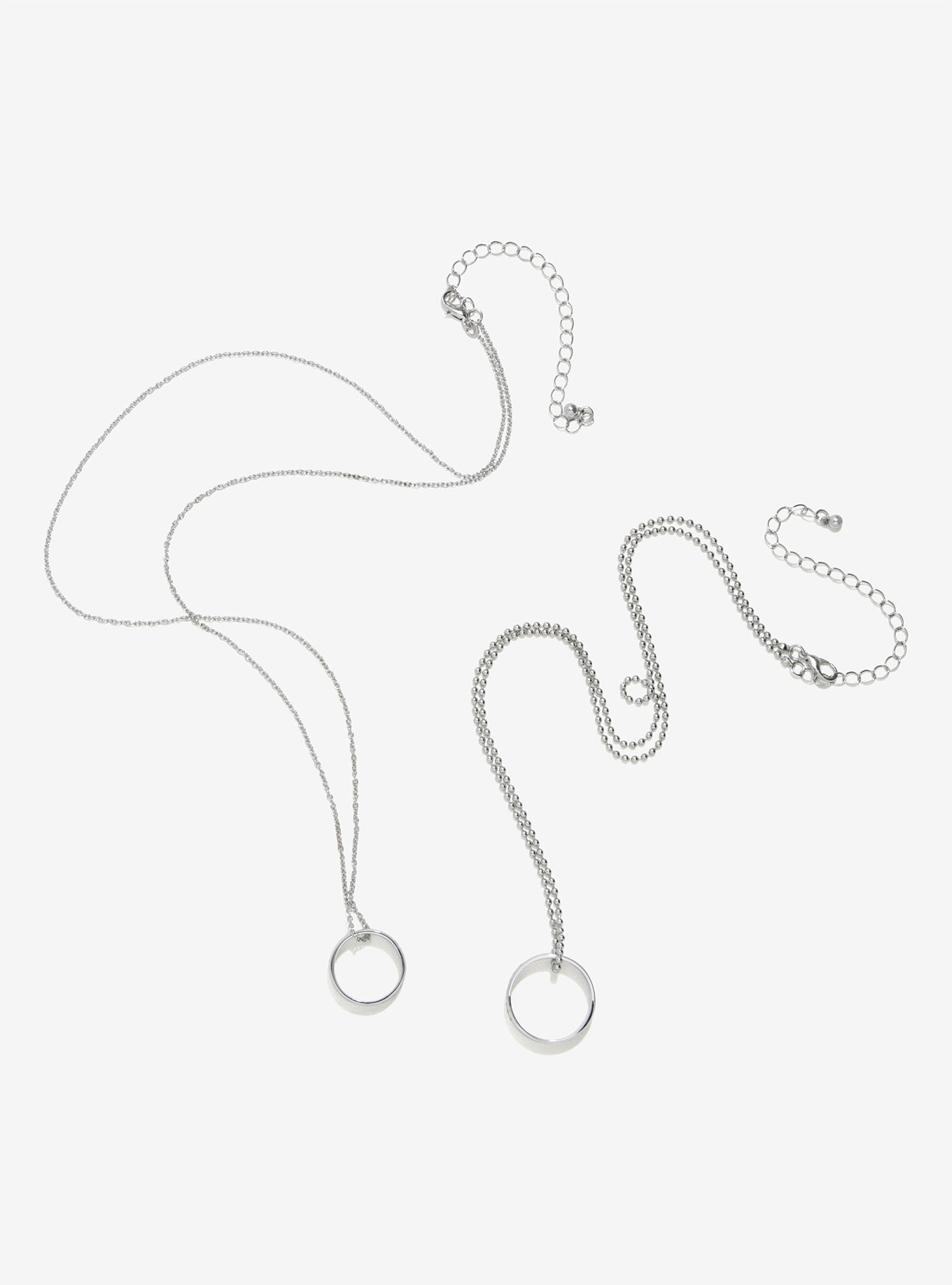 The ‘I Love You’ ring is strung from a silver-tone 24″ chain, while the ‘I Know’ ring is strung on a silver-tone 26″ ball chain – both necklaces have an additional 4″ extender chain for adjustment. The website description notes the ring sizes as 7 and 11, but the photo of the box shows the sizes marked as 6 and 10, so I’m not sure which is correct. *Update* Box Lunch has updated their website to include both size options.