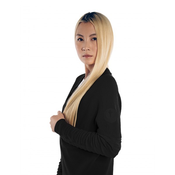 Womens’ wrap top based on the design of Rey’s outfit in Star Wars Episode VII – The Force Awakens. The front is inspired by her outfit’s crossed front and arm wraps. The left upper arm sleeve holds a raised silicon badge of the Resistance.