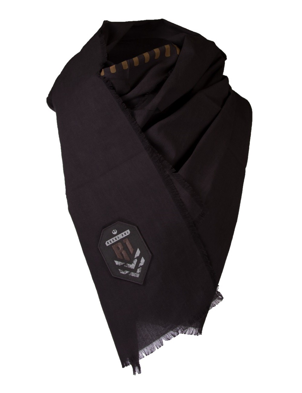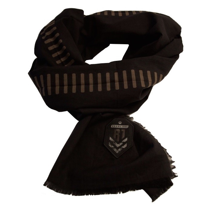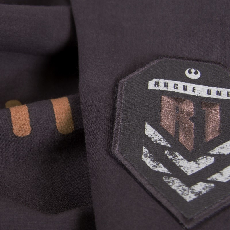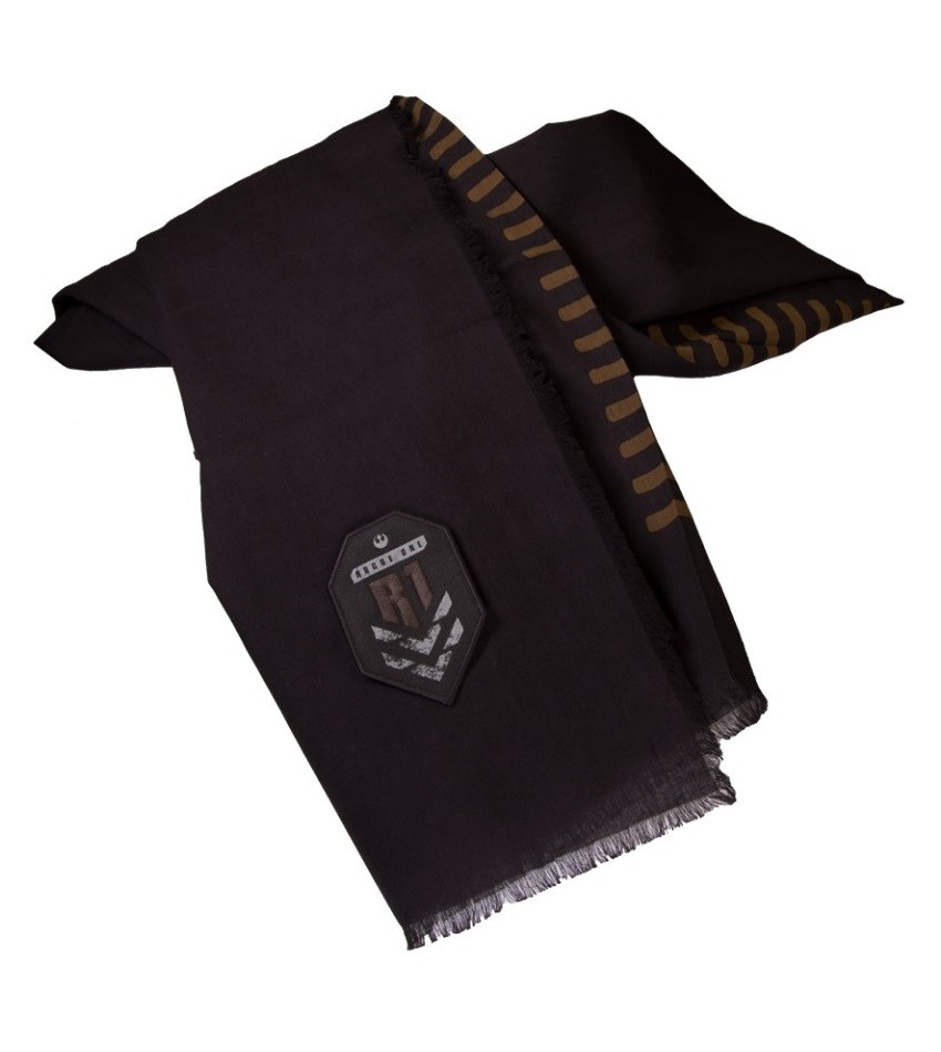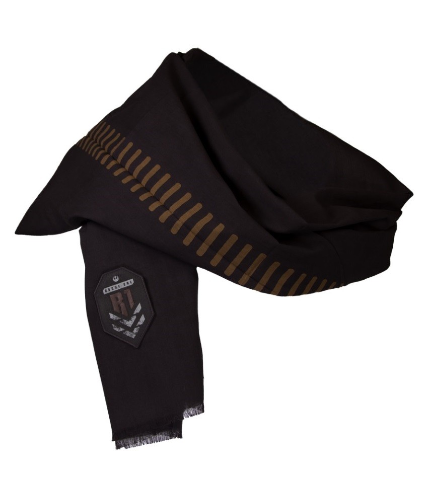 Soft cotton scarf with unique design inspired by the look of Rogue One – A Star Wars Story. Freyed edges add a rough and rugged look. The print and woven Rogue One badge are eye-catching details that clearly link this scarf to the movie.