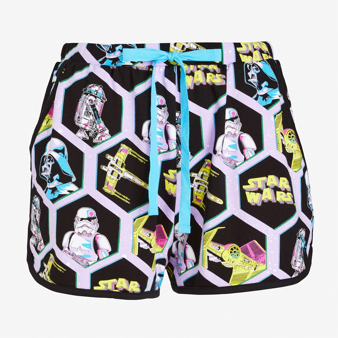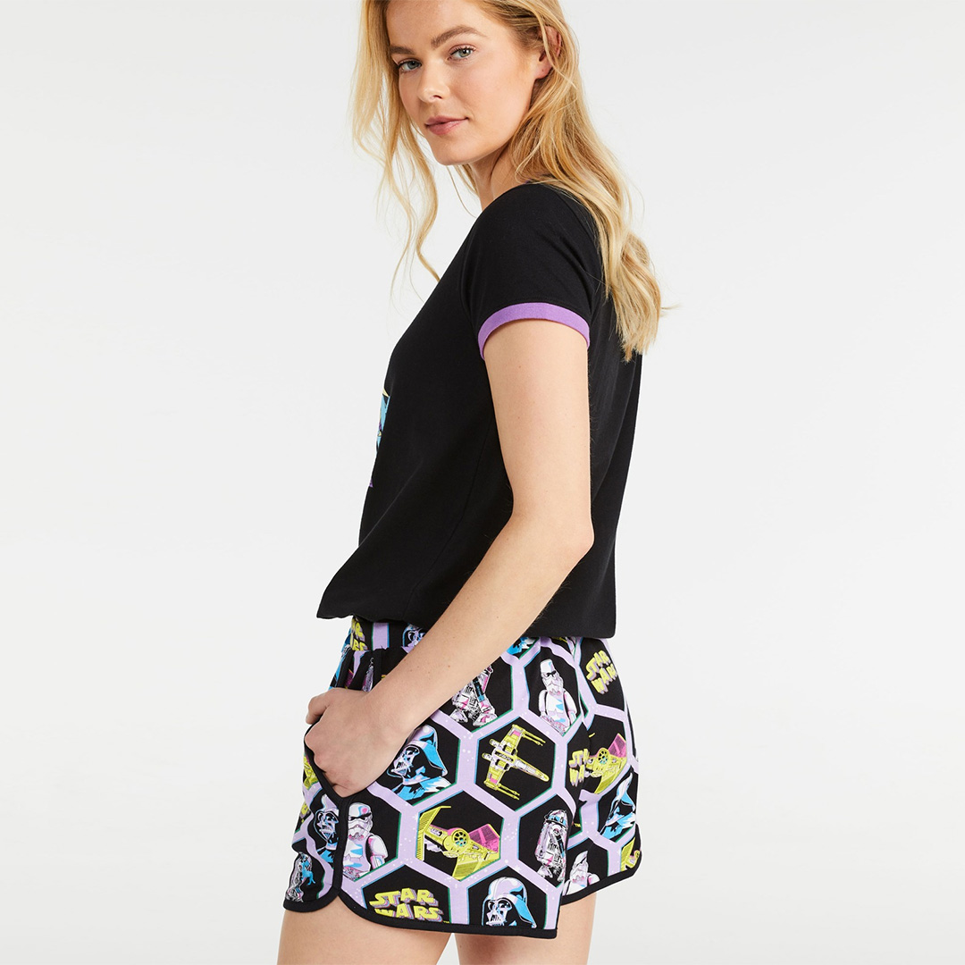 Peter Alexander has a new range of women’s Star Wars sleepwear. The new range includes a women’s sleepwear t-shirt and matching shorts, featuring a Dark Side theme. The black t-shirt has purple ringer-style trim and a front print of Darth Vader with the text ‘Dark Side’, while the shorts feature a honeycomb style repeating print featuring classic Star Wars characters and starships.