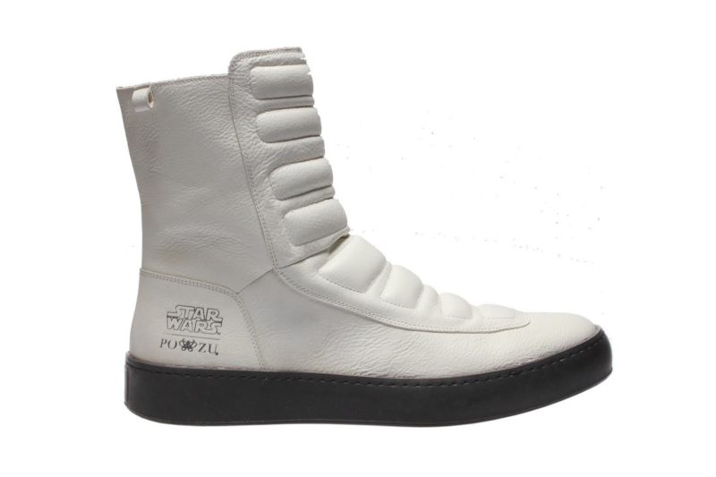 Po-Zu have released a fourth new preview of their upcoming Star Wars footwear collection – the Finn boot! Inspired by the Stormtrooper boots FN-2187 wears in The Force Awakens, which appear to be made from leather. I notice that the press release doesn’t mention if these will be available in women’s, men’s or children’s sizes – all of the previously revealed styles will be available in women’s sizes, so I really hope these Finn boots will be too.