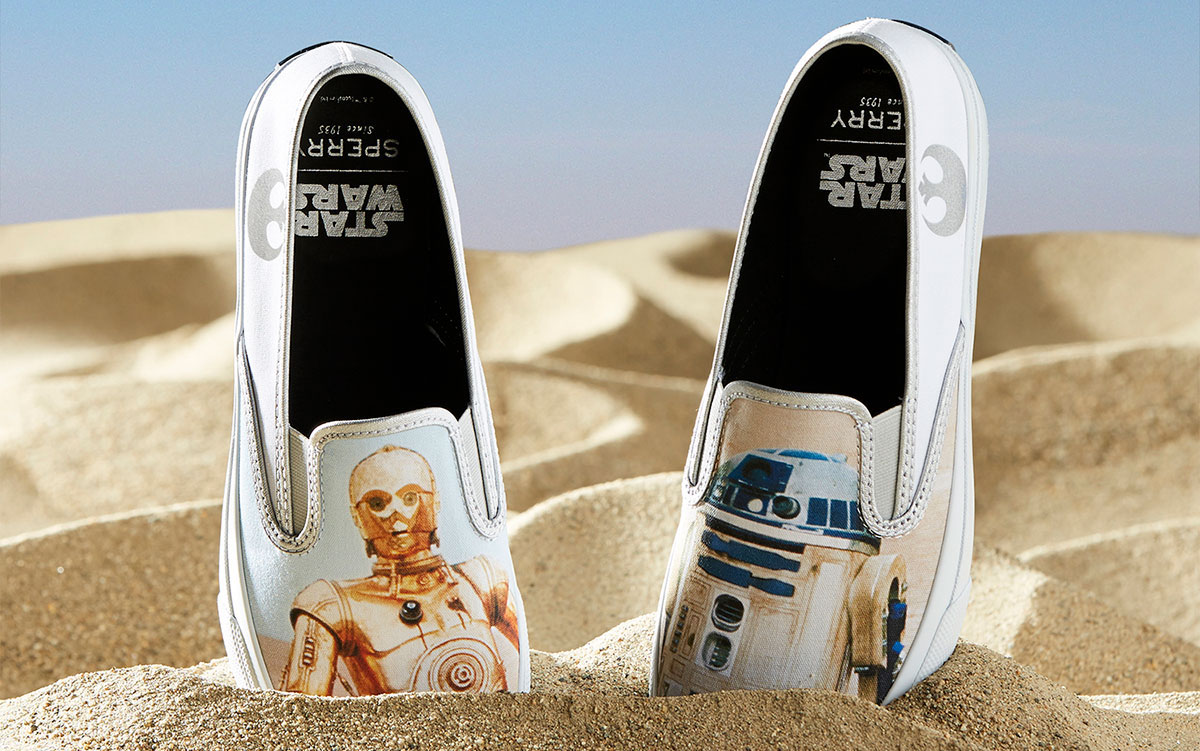 Footwear company Sperry has announced an upcoming Star Wars footwear collection! Due to release on 10th August 2017, the collection includes women’s, men’s and unisex footwear styles to celebrate the 40th Anniversary of Star Wars. Designs include C-3PO & R2-D2, Han Solo & Chewbacca, and classic artwork by Ralph McQuarrie. The collection will be sold online, at Sperry stores in the US and selected international retailers (except for the McQuarrie style, which will be a Sperry.com online exclusive).
