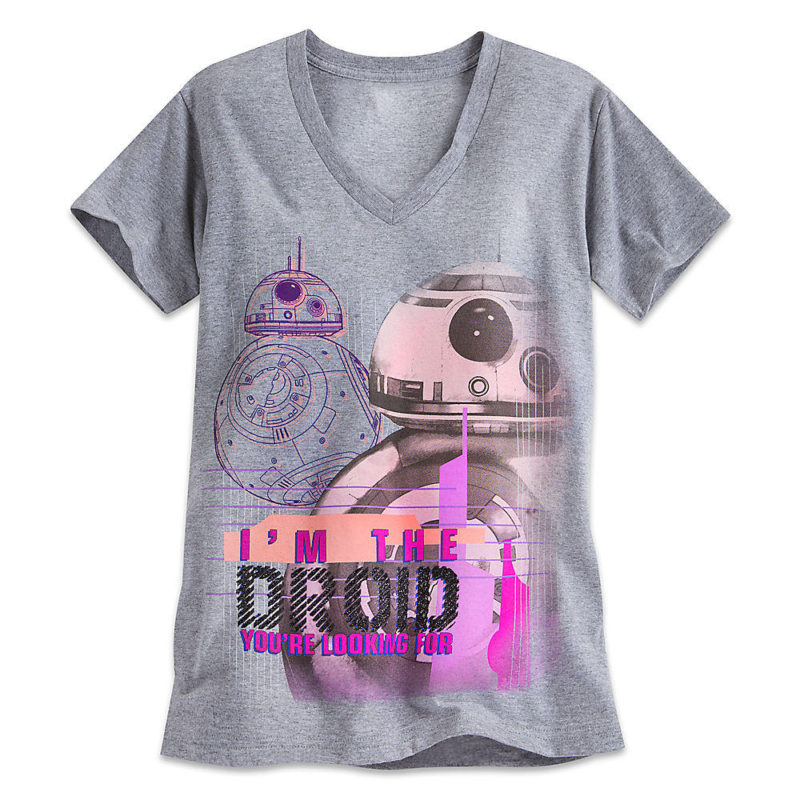 - Women’s BB-8 v-neck t-shirt – US$22.95 each – sizes XS to XXL (currently on sale for US$12.00 each)