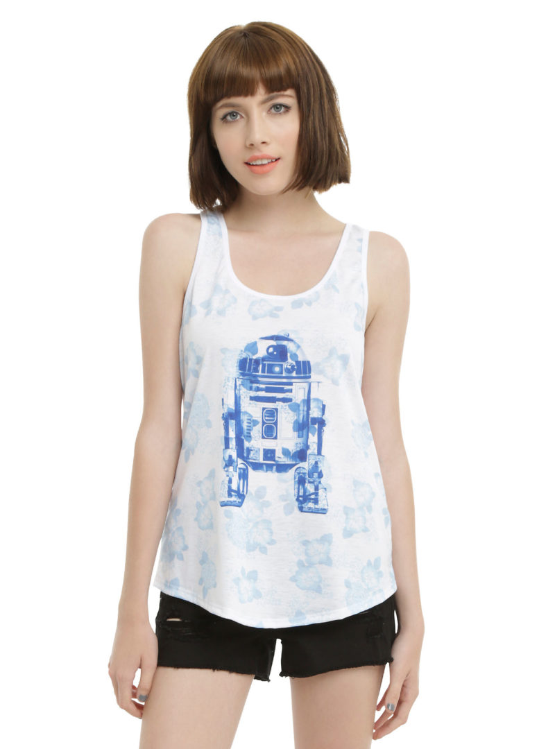 - Her Universe floral R2-D2 tank top – US$24.90 to US$28.90 each – sizes XS to 3X