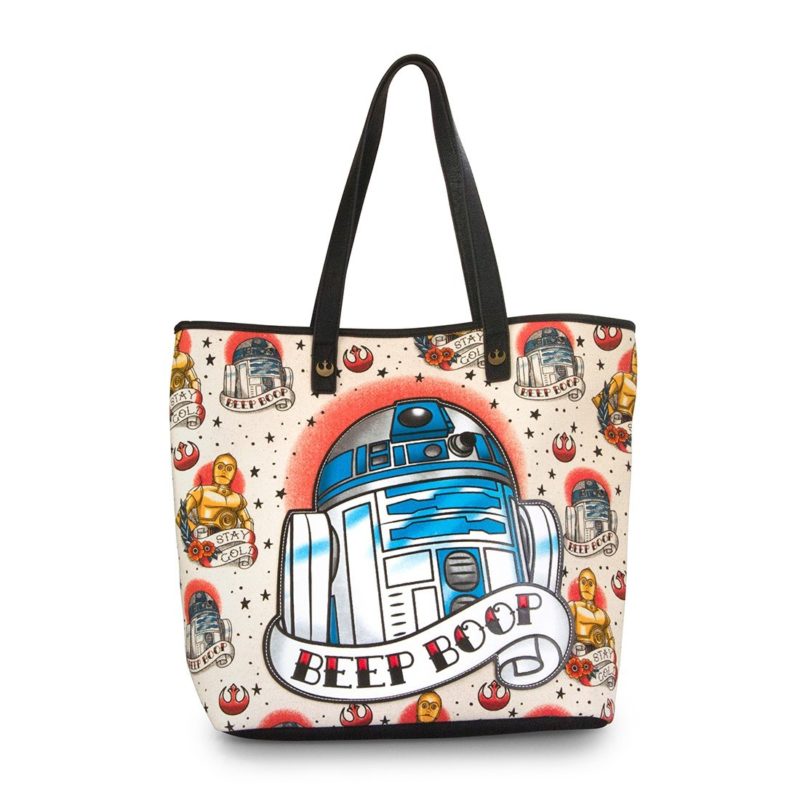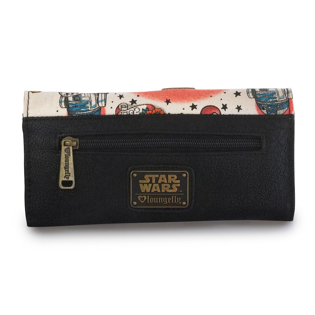 Loungefly has several new Star Wars bags and wallets available. First previewed at the WWDMagic trade show back in February, the new range includes the ‘tattoo’ style R2-D2 tote bag and matching wallet, as well as 2 new backpacks and matching coin/cosmetic bags. The tattoo-style items feature a great faux leather appliqué of R2-D2 on the front, while the tote bag has small Rebel Alliance symbol studs on the handles. The BB-8 backpack and coin/cosmetic bag features the same repeating print as the BB-8 duffle bag and women’s zip-up wallet also available from Loungefly.