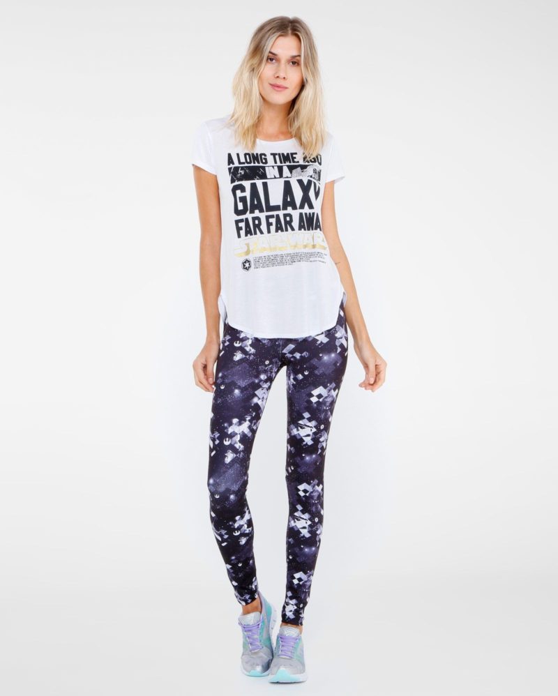 Brazilian store Riachuelo has a new women’s Star Wars apparel collection available. The range includes 24 items – t-shirts, sweatshirts, tank tops, sports crop tops, leggings and pyjamas. Many of the items feature foil or glitter accents – I love seeing details like these in women’s Star Wars apparel, it helps set it appart from men’s items.
