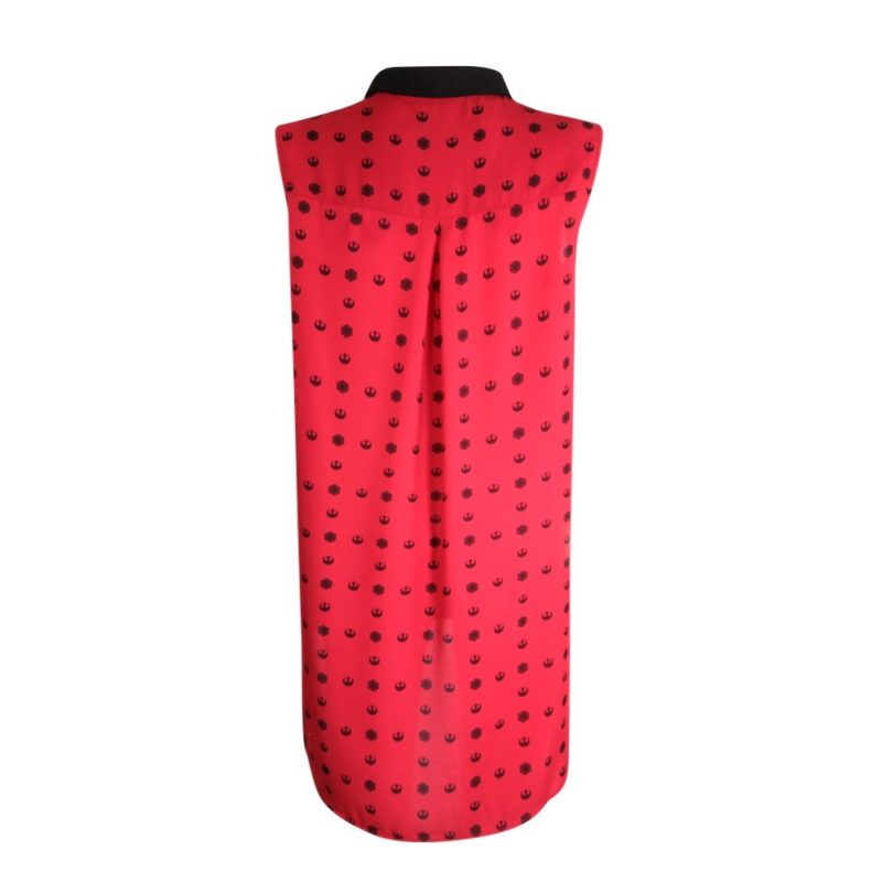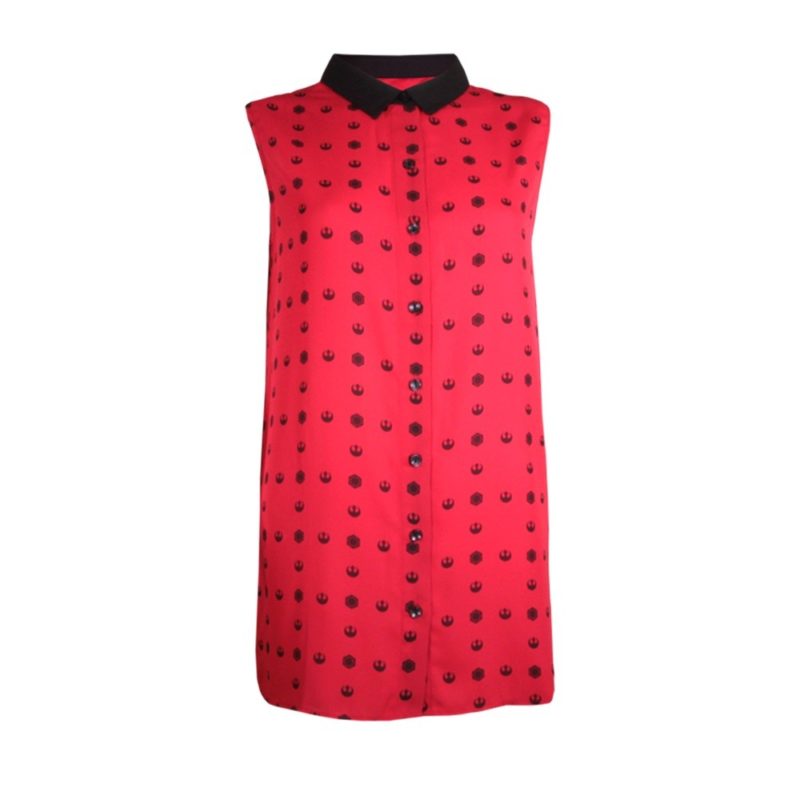 We Love Fine has a new range of women’s Star Wars fashion available. The new items include a First Order blouse, Rebel desert scene dress, Rebel sweatshirt, and Stormtrooper slouch pants. The First Order blouse is so striking, with a strong red and black colour scheme, with First Order and Resistance symbol print. The Rebel desert dress has a lovely style, with palm tree print around the lower hem that looks like Scarif.