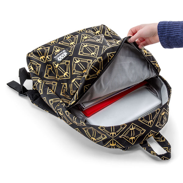 Celebrate the history of science fiction with this Star Wars X-Wing Art Deco Backpack. Rendered in black and gold, it features X-wing fighters in a geometric art deco pattern. And like all bags from the 1920s, it has a padded interior spot for your laptop/tablet in case your astromech isn’t holding it for you.