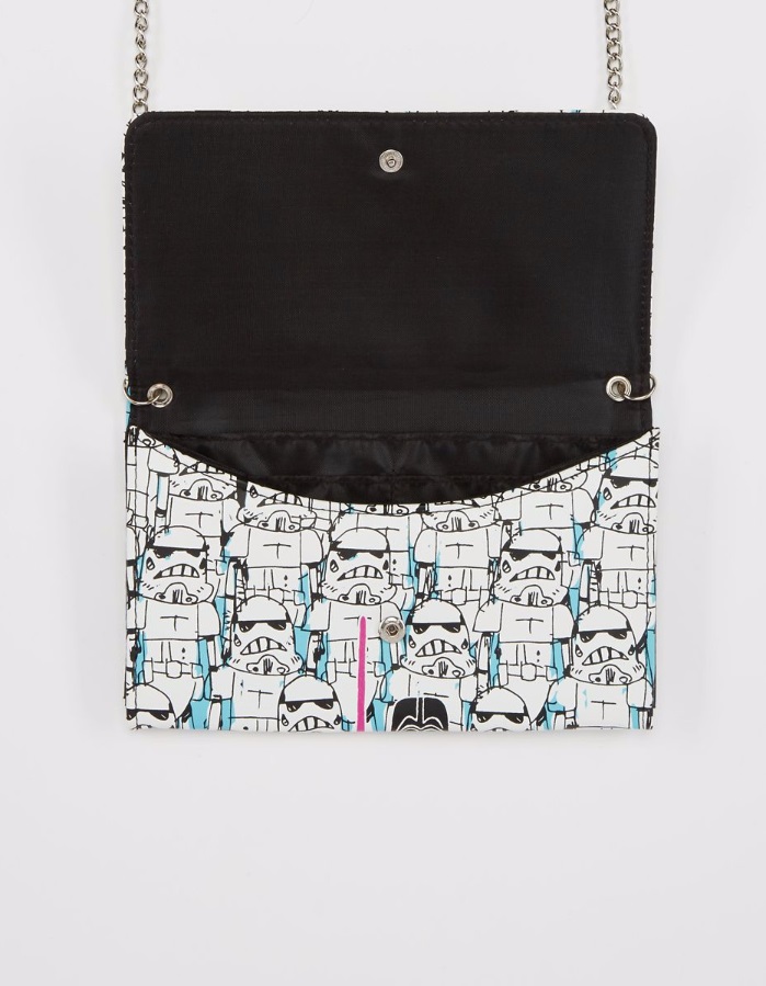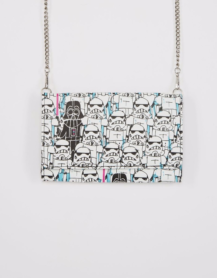 Spencers has a new women’s Stormtrooper wallet available. The envelope wallet features an all-over print of Stormtroopers in a cute hand drawn style, which also includes Darth Vader. The wallet closes with a dome-snap, and includes a 48″ chain for wearing over your shoulder as a small handbag. The wallet is priced at US$21.99 – Spencers can ship internationally – get free US shipping on orders over US$30 with the code ‘SHIPFREE15’.