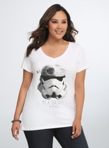 Plus size fashion website Torrid has a new women’s Stormtrooper t-shirt available. The women’s plus size white t-shirt features a stormtrooper helmet design on the front, with the text ‘In A Galaxy Far Far Away…’ underneath. Available in plus sizes 0 to 6, it is priced at US$34.50 each – but is included in the current ‘buy 2, get 1 free’ promotion with the code ‘FREETIME’. There are currently 4 other plus size Star Wars tops available that are also included in the promotion, as well as pants and the Her Universe Darth Vader dress. Torrid also has a selection of Loungefly x Star Wars bags available, including the Empire Strikes Back poster tote bag (featuring artwork by Drew Struzan), the Stormtrooper crossbody bag, and the Darth Vader crossbody bag – Torrid can ship internationally.