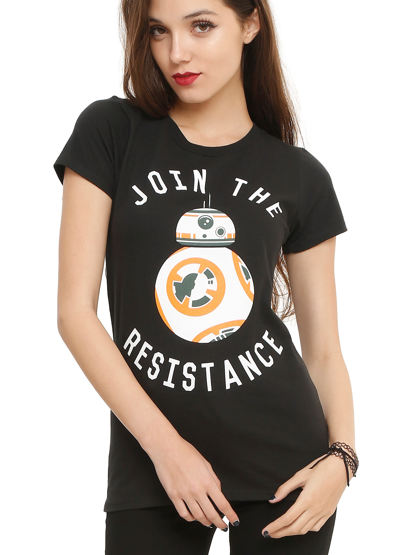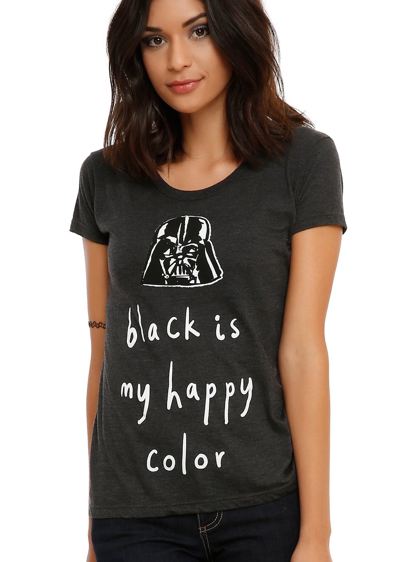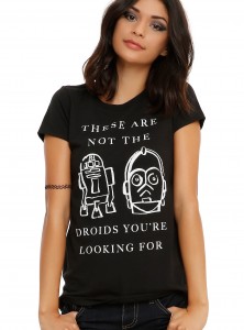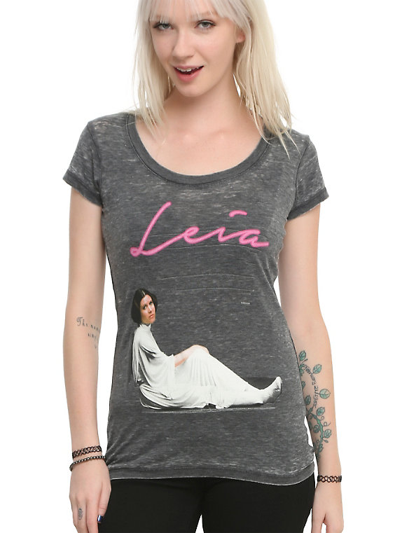 Hot Topic has five new women’s Star Wars t-shirts available. The styles feature Darth Vader, Princess Leia, R2-D2, C-3PO and BB-8. All five t-shirts are available in sizes XS to 3X, with prices ranging from US$22.50 to US$39.50 depending on size/style. The current Hot Topic on-line promotion is 25% off with the code ‘HEYAUTUMN’ – they can ship internationally. The Princess Leia design was originally available on a black tank top from We Love Fine, so it’s great to see it being used again – there should always be more Princess Leia apparel 🙂