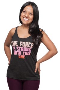 Thinkgeek has a new women’s Star Wars tank top available. Exclusive to Thinkgeek, the women’s heather grey racerback tank top features a front print of the quote ‘The Force Is Strong With This One’, in a pink gradient. Priced at US$24.99 each, the tank top is available in sizes S to XL – Thinkgeek can ship internationally. A perfect work out top, with an appropriate quote to help keep you going!