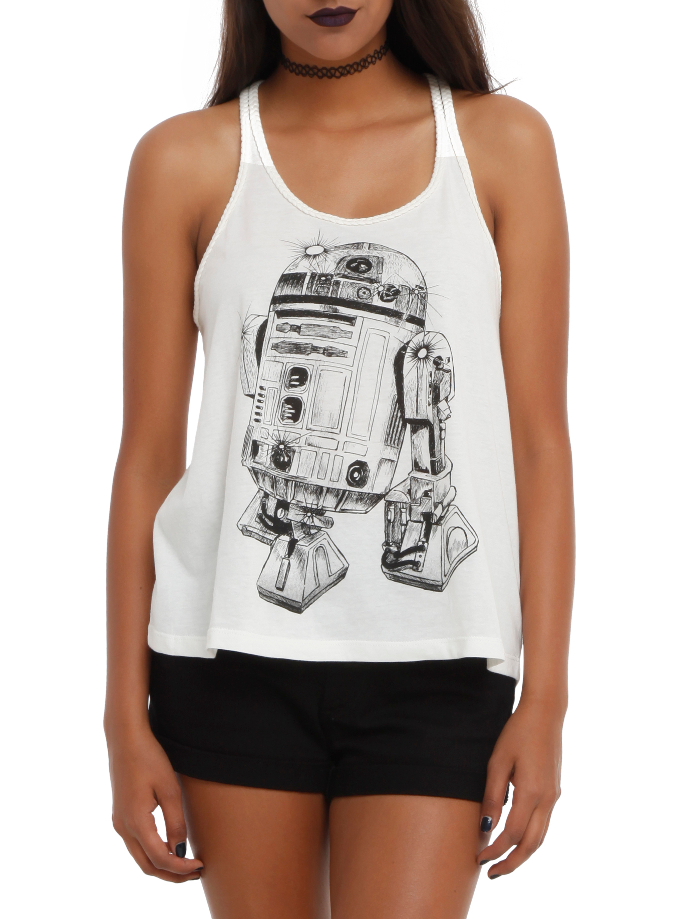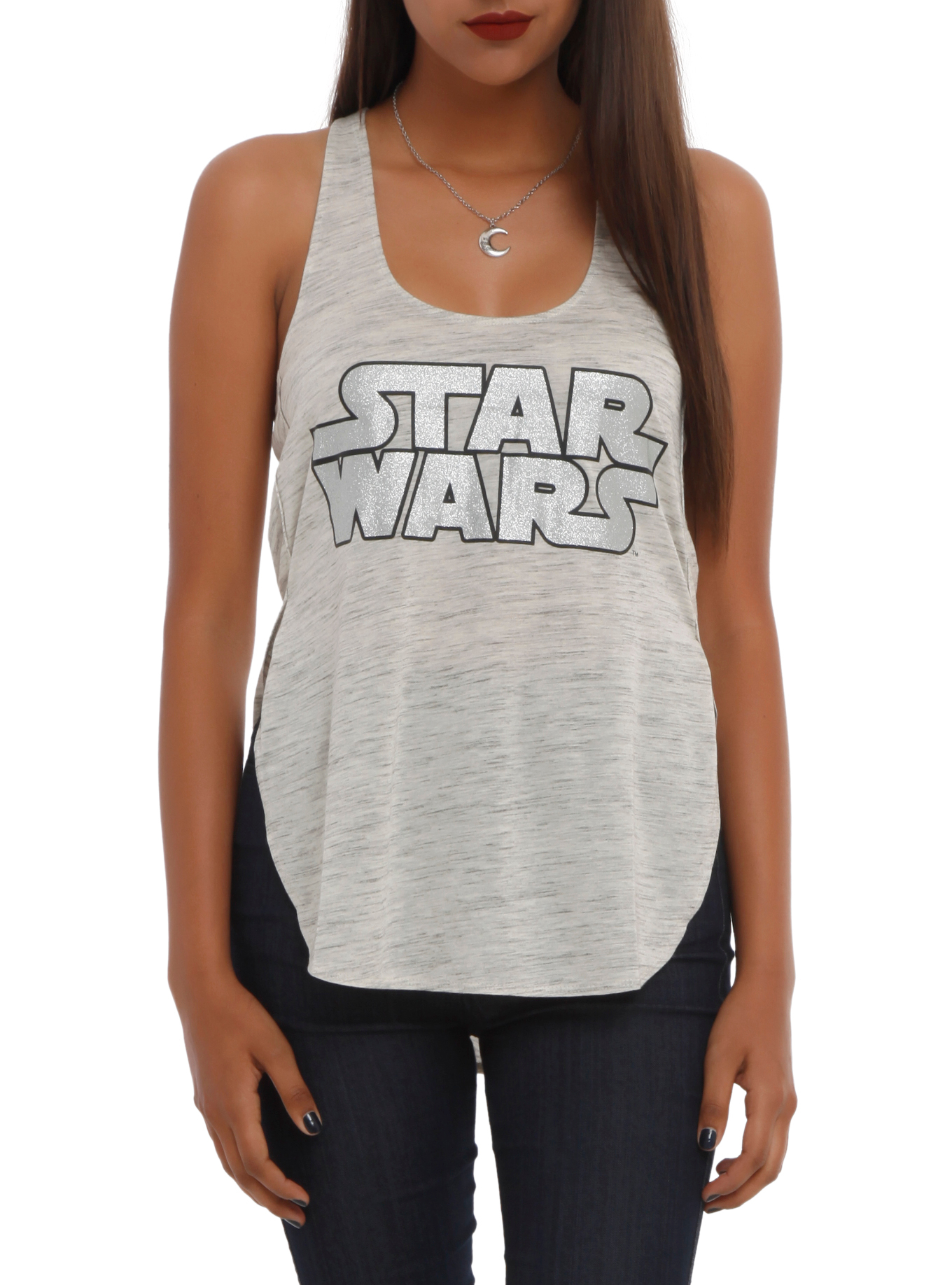 Hot Topic has added two new women’s Star Wars tops to their website. The first is a white tank top featuring R2-D2 and braided shoulder straps, while the second is a grey tank top with a silver glitter Star Wars logo and a high split at the sides. Both tops retail for US$22.50 each, but Hot Topic currently has 25% off everything on their website, so these tops are on sale for US$16.88. They are available in sizes S to XL – Hot Topic ships internationally.