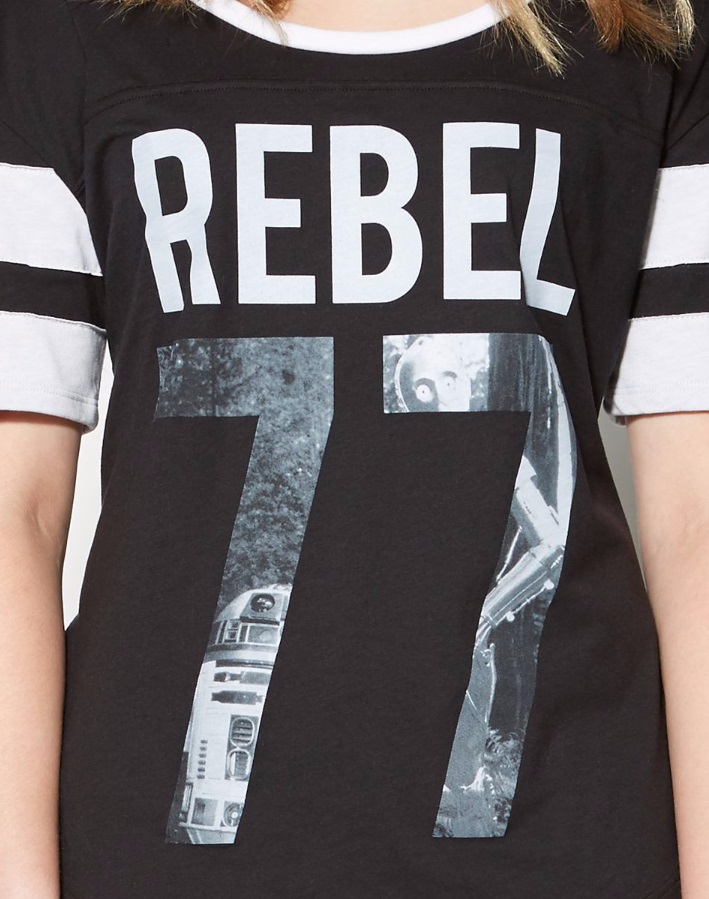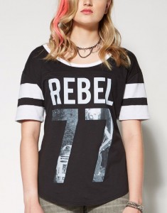 Spencers has added a new women’s Star Wars t-shirt to their website. The black t-shirt features the text ‘REBEL’ on the front, with the numbers ’77’ underneath showing R2-D2 and C-3PO. Made by Mighty Fine, the white bands on the sleeves give this a great ‘sporty’ feel with the ‘team number’ style graphic. Available in sizes S to XL, it is priced at US$26.99 each – Spencers can ship internationally.