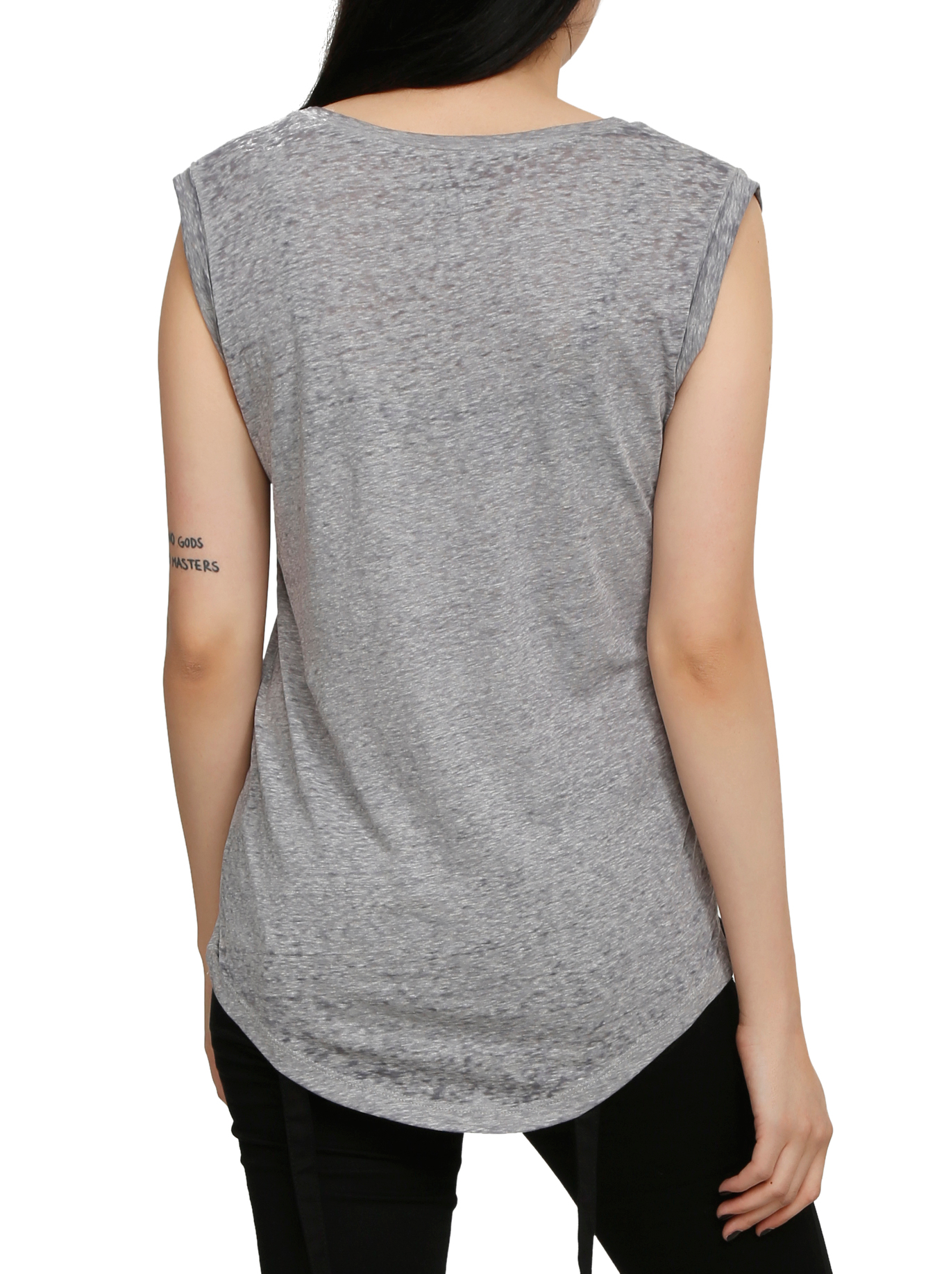 Hot Topic - women's heather grey muscle-cut tank top (front) Hot Topic - women's heather grey muscle-cut tank top (back) Hot Topic - women's heather grey muscle-cut tank top (front)