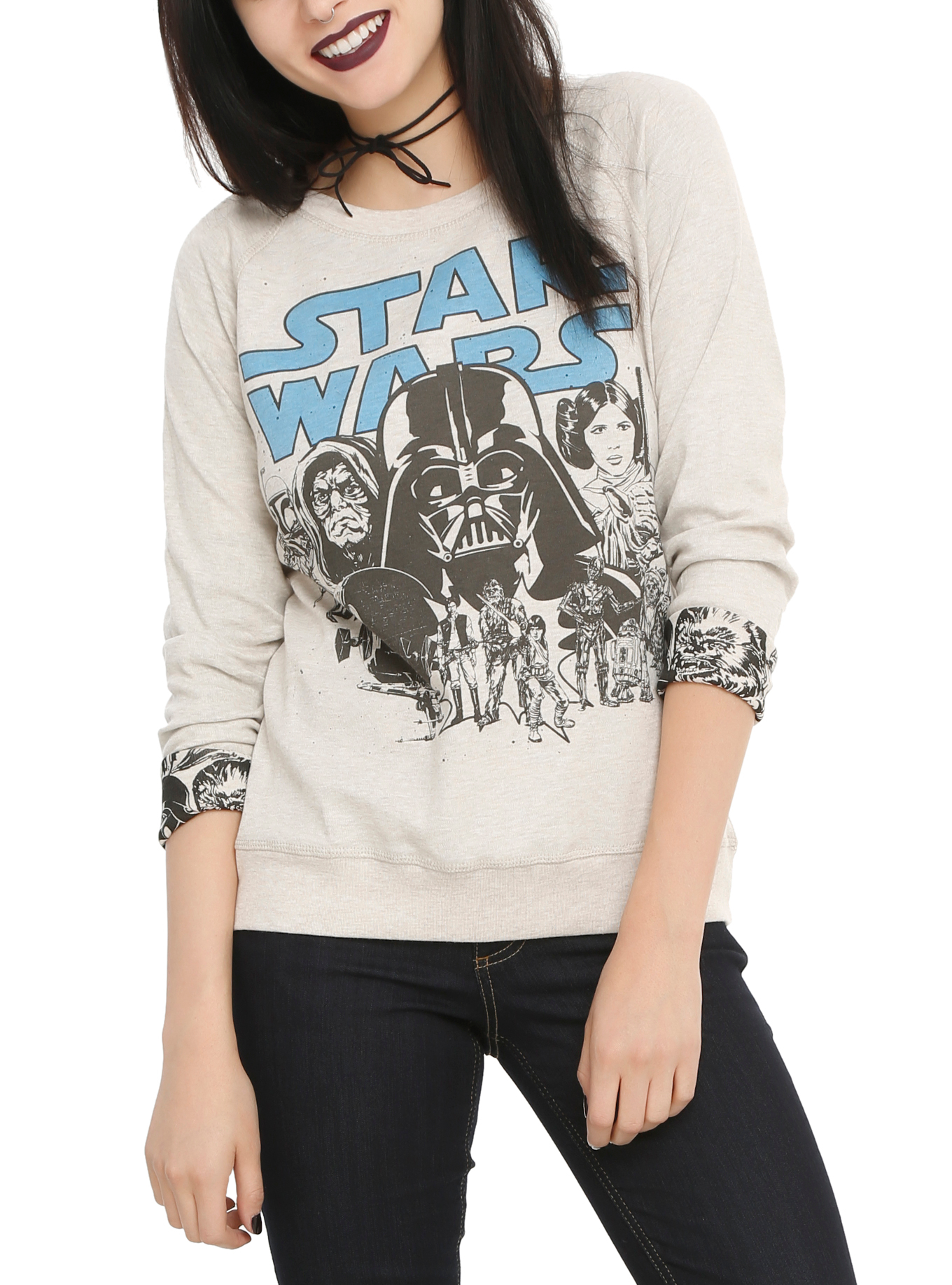 Hot Topic has added two new women’s Star Wars tops to their website, both featuring very similar prints. The first is a heather grey muscle-cut tank top – available in sizes S to XL, it is priced at US$24.50 each. The second is a long sleeve reversible pullover top, with an all-over print on the reverse side – available in sizes S to XL, it is priced at US$32.50 each. Hot Topic currently has 30% off everything on-line for today only with the code ‘THIRTYNOW’ so you can grab these items for less – they can ship internationally.