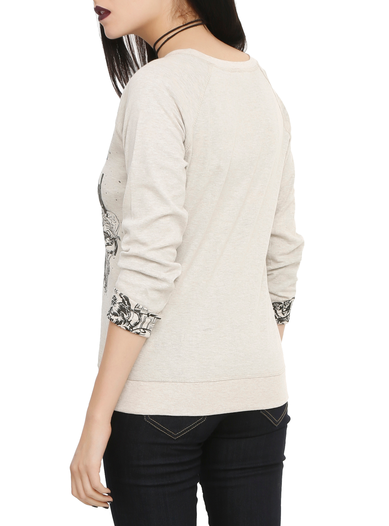 Hot Topic - women's long sleeve reversible pullover top (front) Hot Topic - women's long sleeve reversible pullover top (back) Hot Topic - women's long sleeve reversible pullover top (front/reverse side)