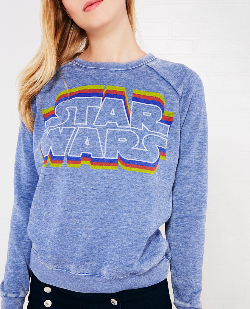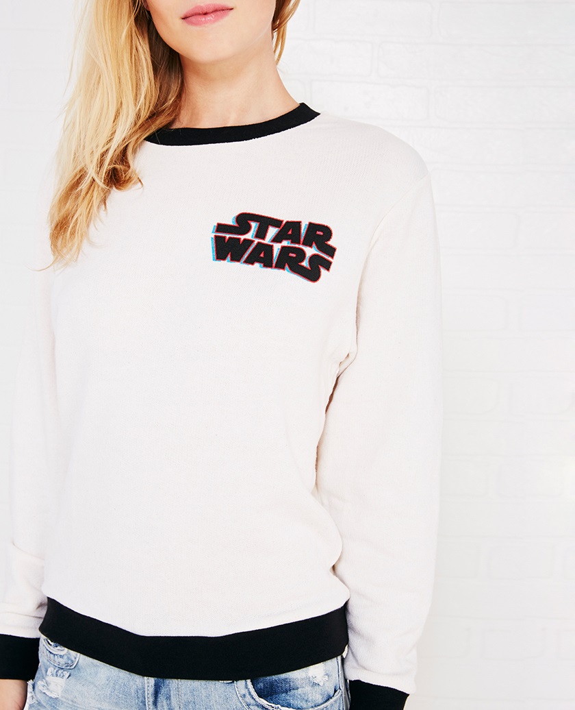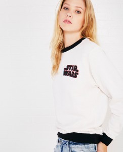 Wet Seal has two new women’s Star Wars tops available. The first is a blue fleece raglan sweatshirt with the Star Wars logo printed on the front, while the second is a white French terry pullover top with contrasting black banded ribbed trim and the Star Wars logo printed on the front. Both tops are priced at US$24.90 each and both are available in sizes S to XL. Unfortunately Wet Seal does not ship outside the US, so international customers can only purchase via a mail redirection service.