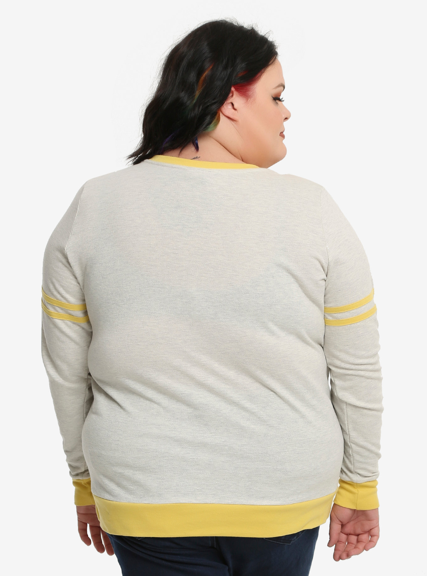This sweater reminds of watching A New Hope for the very first time, and you can see why! This oatmeal colored athletic pullover has yellow detailing and the cutest retro style logo that looks like it came right out of 1977.