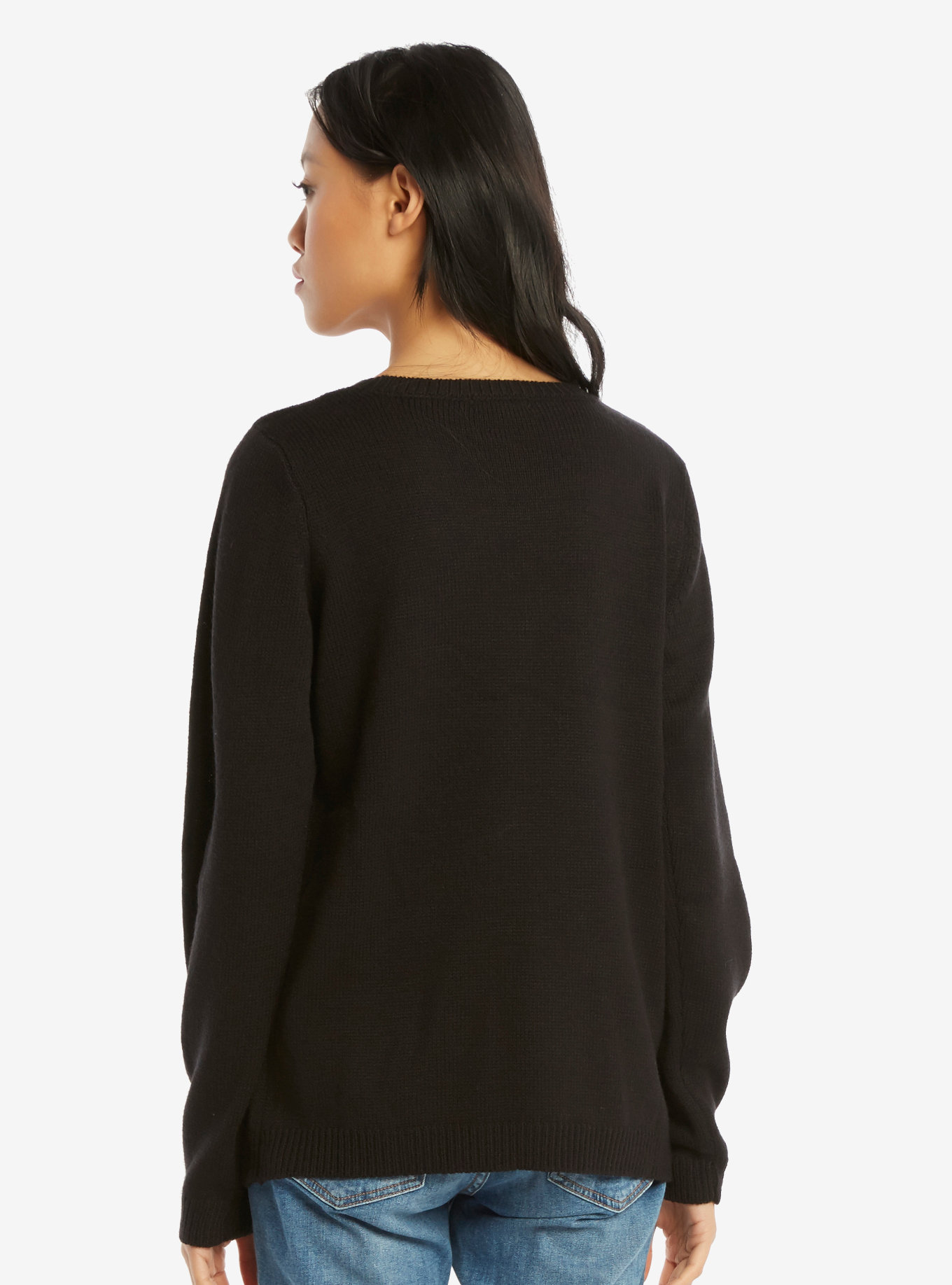 You are a traitor and a part of the Rebel Alliance. And now you have a sweater to show for it. This black intarsia knit sweater features the Rebel Alliance logo in white.