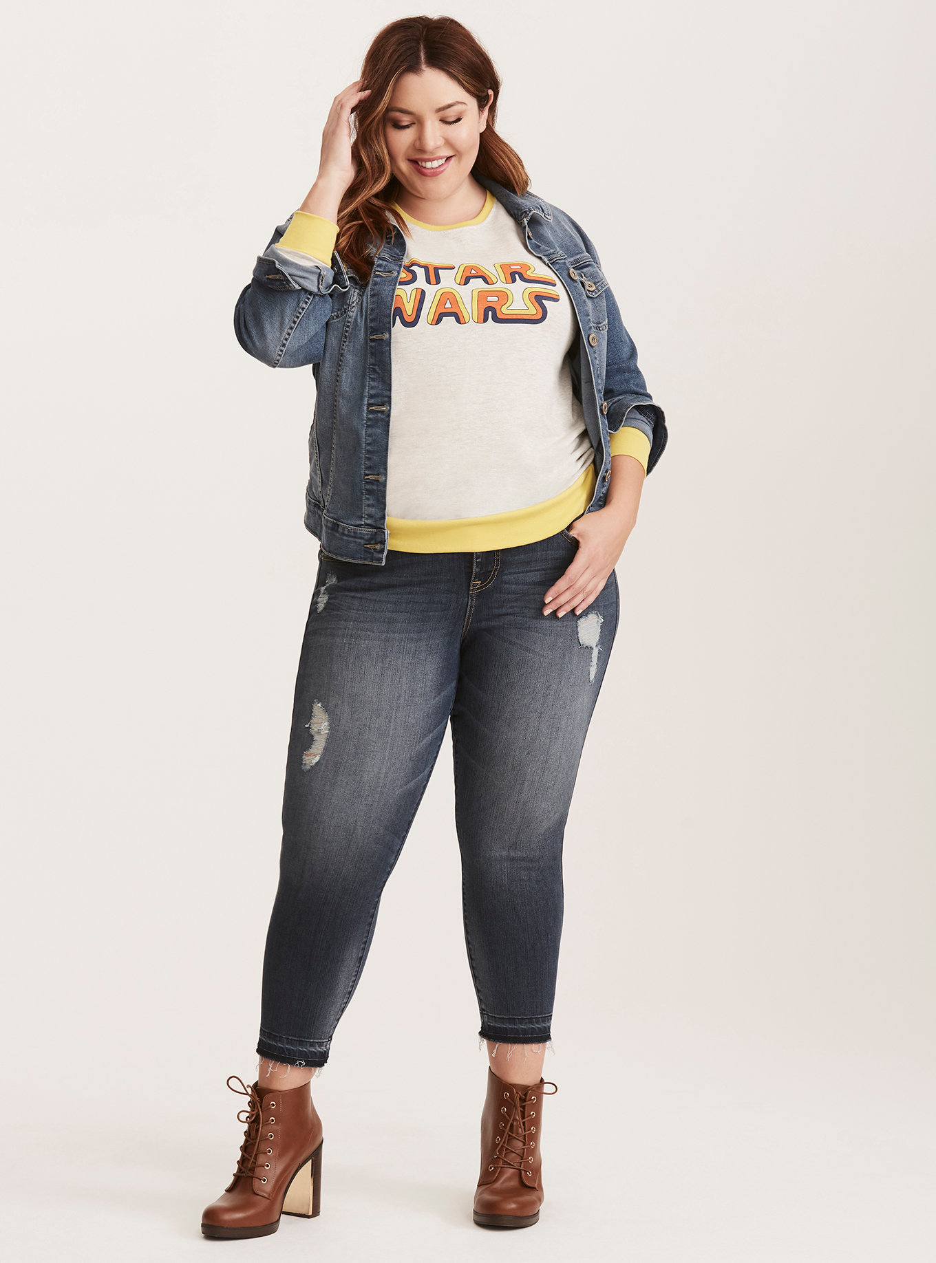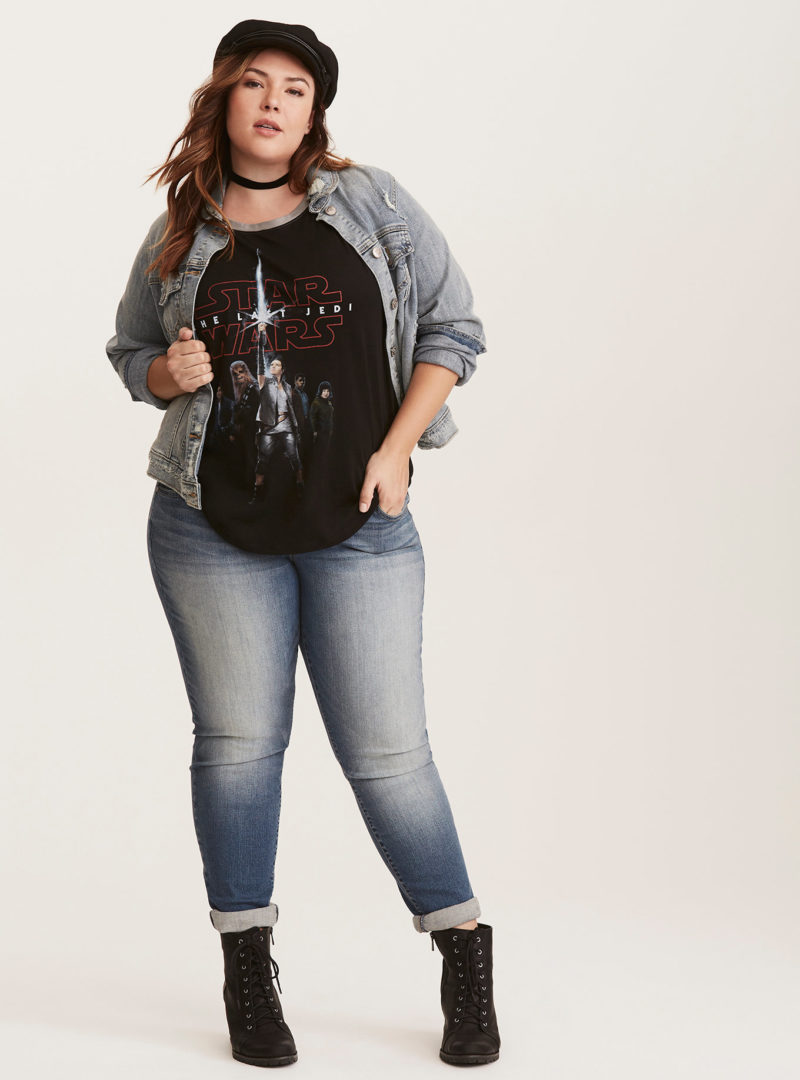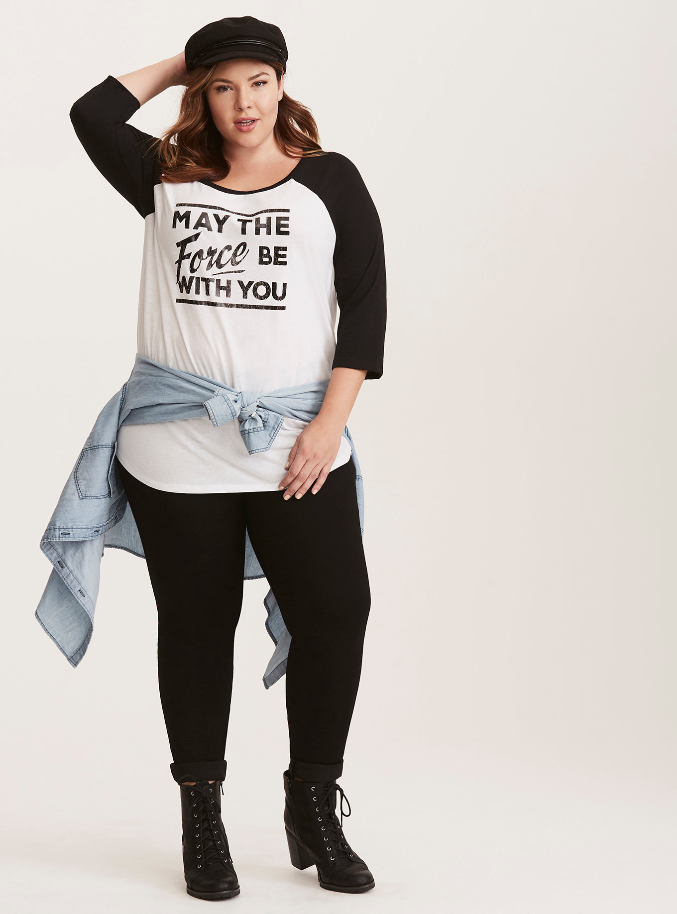 The new Her Universe x Star Wars Force Friday collection has landed at Torrid! The range includes several items also available direct from Her Universe (Rebel sweater, vintage logo sweatshirt), as well as a few other items including The Last Jedi cold shoulder raglan tee and Star Wars floral print leggings (coming soon in standard sizes).