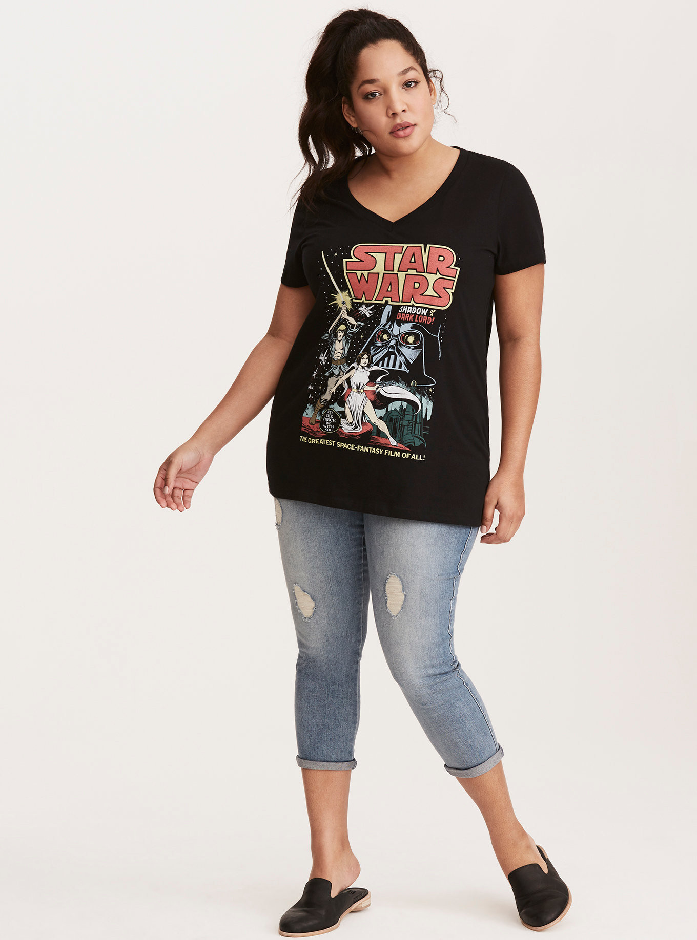 Women’s Star Wars comic art v-neck tee – US$34.90 each – plus sizes 00 to 6