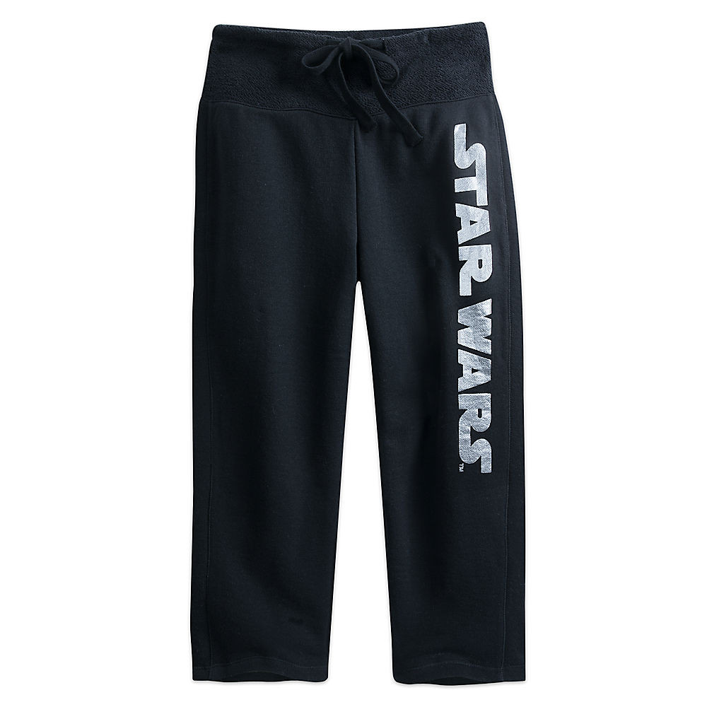 The new, best hope for lounging comfort throughout the galaxy are these supersoft capri sweatpants with French terry interior and silvery Star Wars logo.