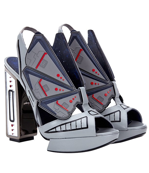 Footwear designer label Nicholas Kirkwood are celebrating their 10th anniversary, and have released a collection of 10 shoes inspired by pop culture of the 1980’s – which includes Star Wars. While the collection doesn’t appear to be licensed, the three inspired designs are so incredible, I just had to share! The collection also includes a range of accessories – prices range from £20.833 (ex VAT) for the tote bag to £208.33 (ex VAT) for the pouchette. Unfortunately, my favourite items are the shoes – which are made to order only until December 1st. When a designer doesn’t display the prices, it’s a good indication it will be out of your price range (except for the lucky few).